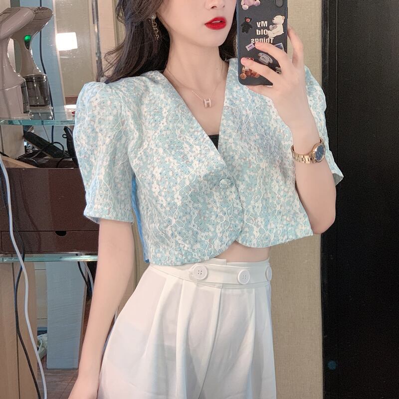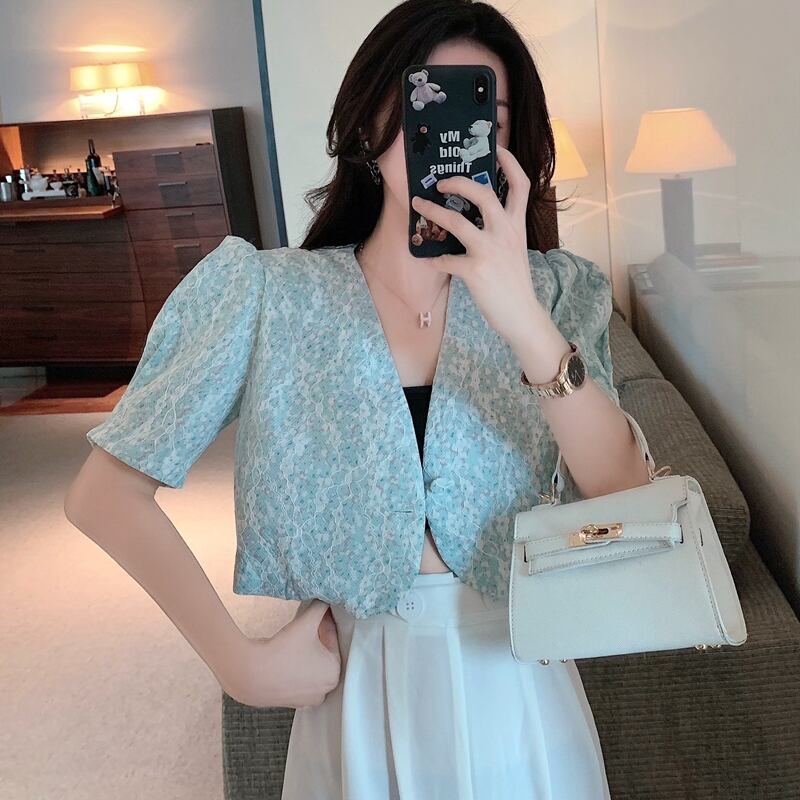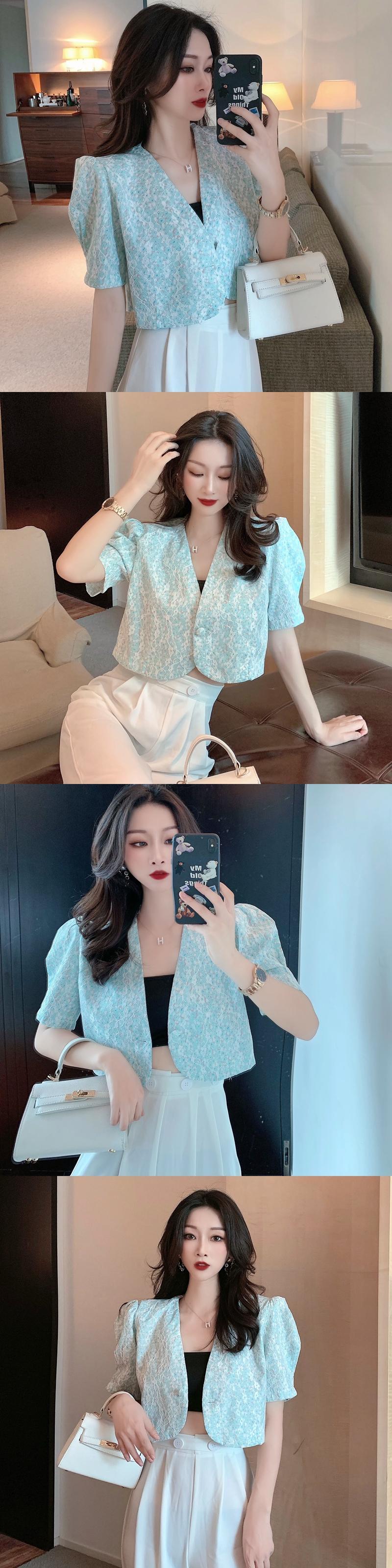 サマースタンダードジャケット スリーブフローラル半袖ルーズ薄手カーディガン ショート レトロ ハーフスリーブ 夏物 花柄 ガールズファッション58180400306