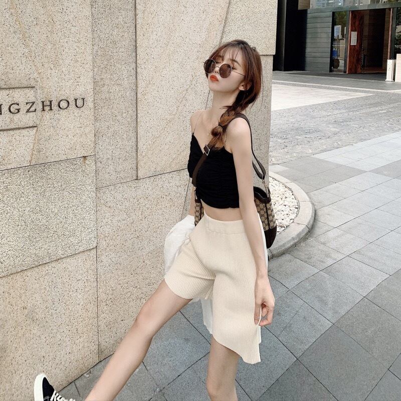 ブラックカジュアルパンツ サマールーズ薄手プリーツハイウェストレッドスタイルショーツ ストリート 夏物 ブルマー ガールズファッション92682948159