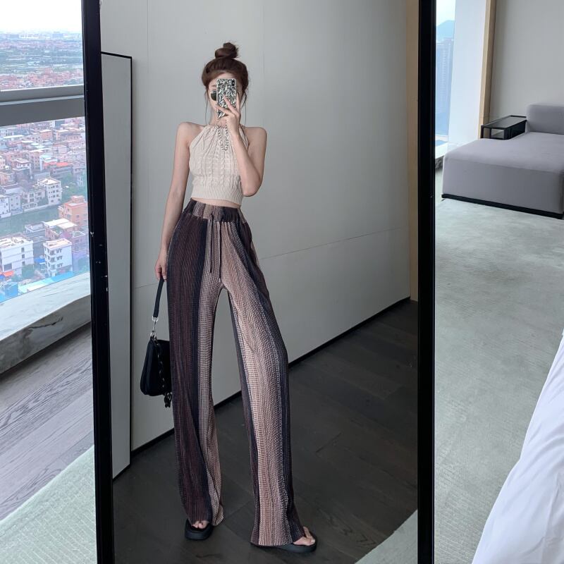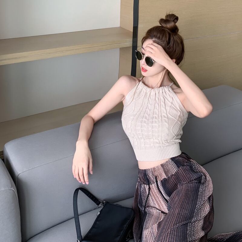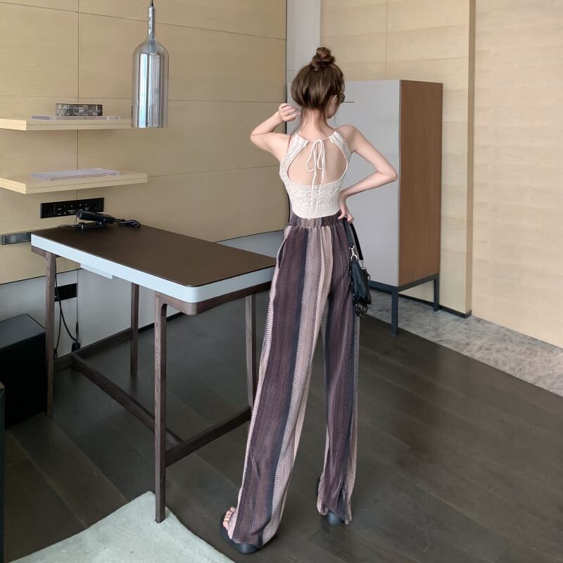 サマーホルターニットショートハイウェストウェストパンツ ワイドレッグ 夏物 ワイドパンツ ガールズファッション50108886440