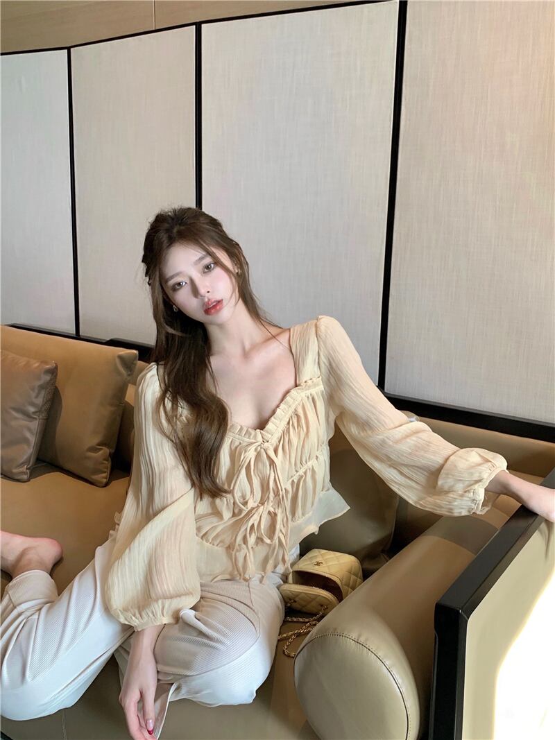 シフォンシャツ サマー薄手ショートスタンダードトップス ロング レトロ 夏物 ガールズファッション77464876353