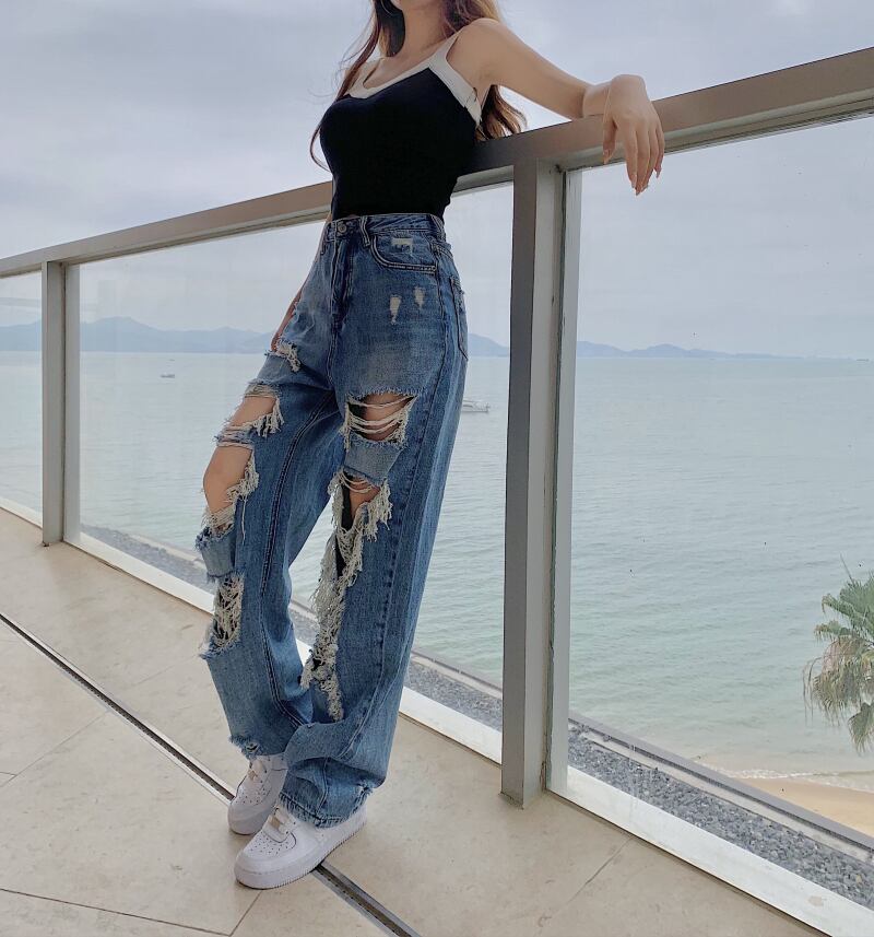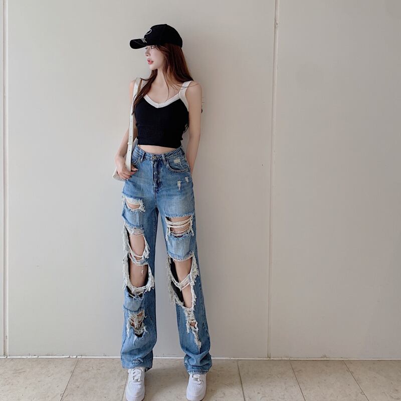 サマースタイルジーンズ レディーススタンダードハイウェストウェストスリムカジュアルルーズワイドレッグパンツ レトロ 夏物 ワイドパンツ ガールズファッション19271318135
