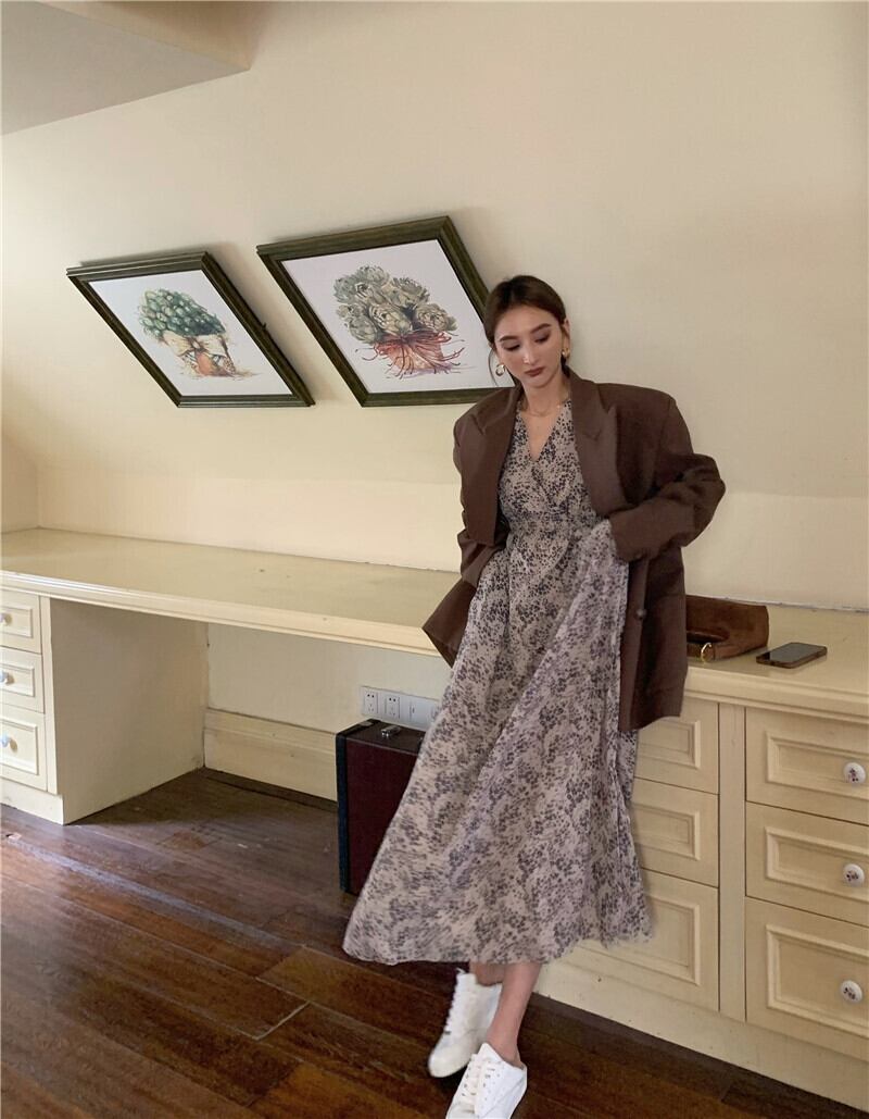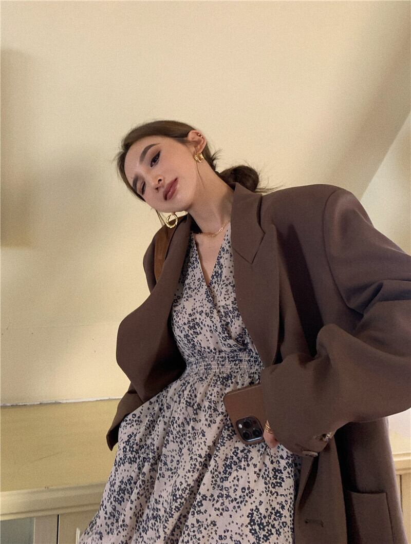 サマースタンダードフローラルドレス ルーズジャケット レトロ ストリート 夏物 花柄 ガールズファッション92419827754