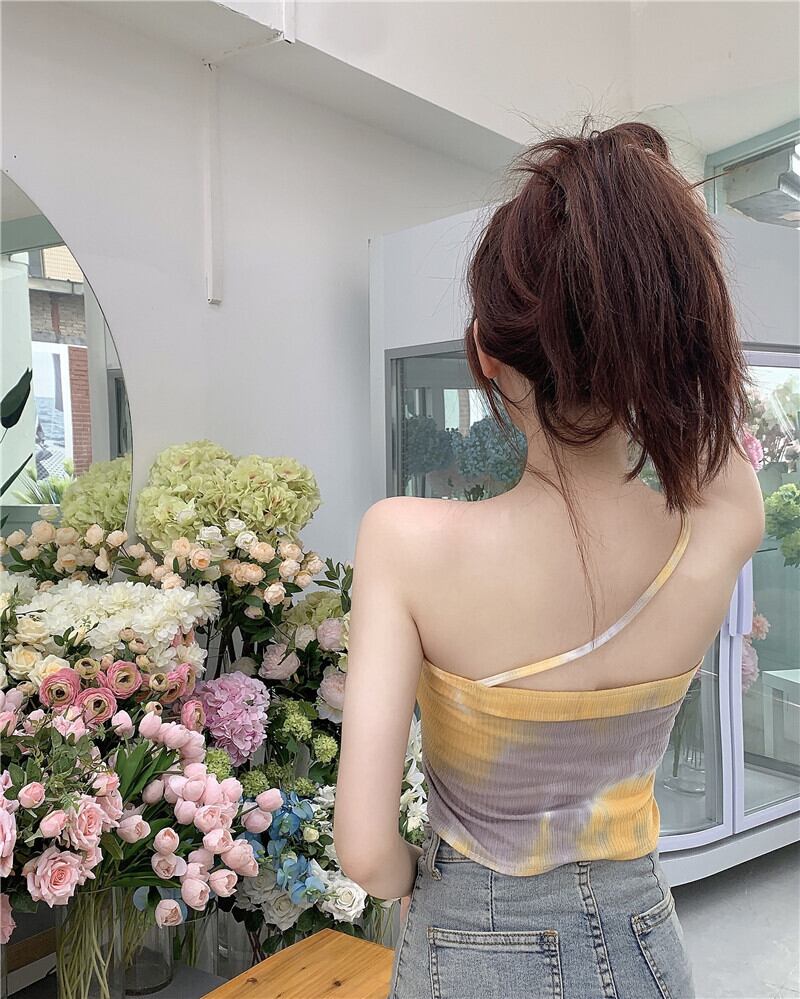 色:ピンクの斜め肩タイダイ,黄斜め肩絞り