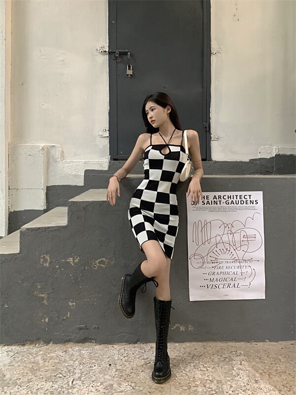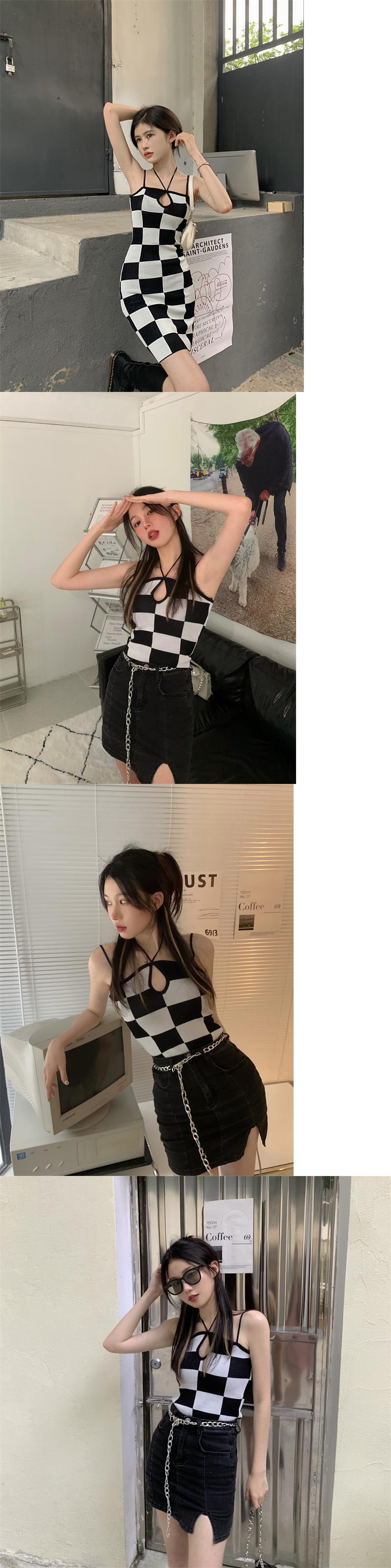 ショートサマーホルタースタンダード格子柄 レトロ 夏物 ガールズファッション95741250072