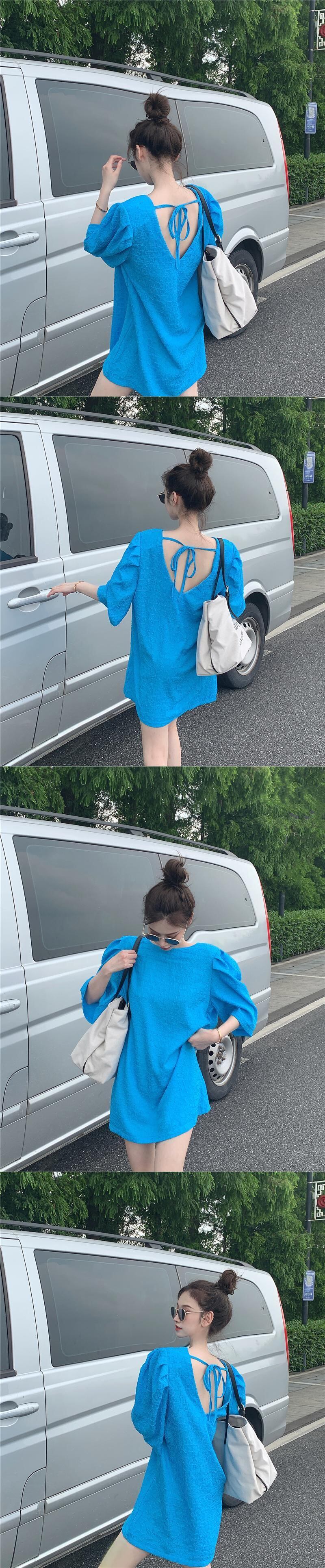 ホルタースリーブルーズトップス サマースタンダードTシャツ レトロ レース 夏物 レースアップ ガールズファッション52092883630