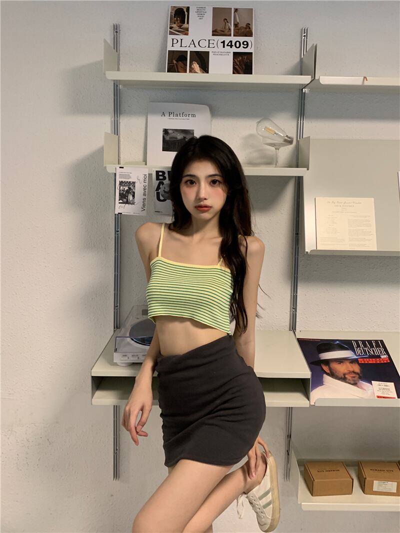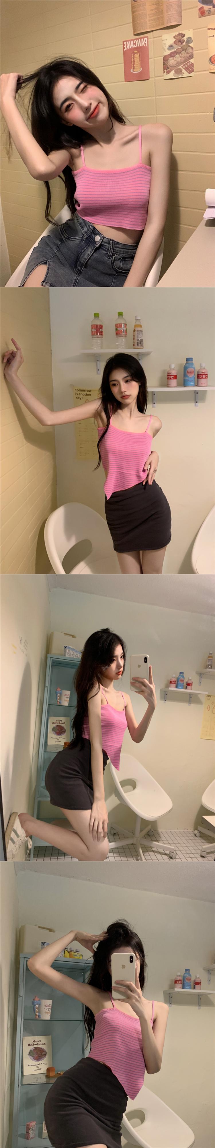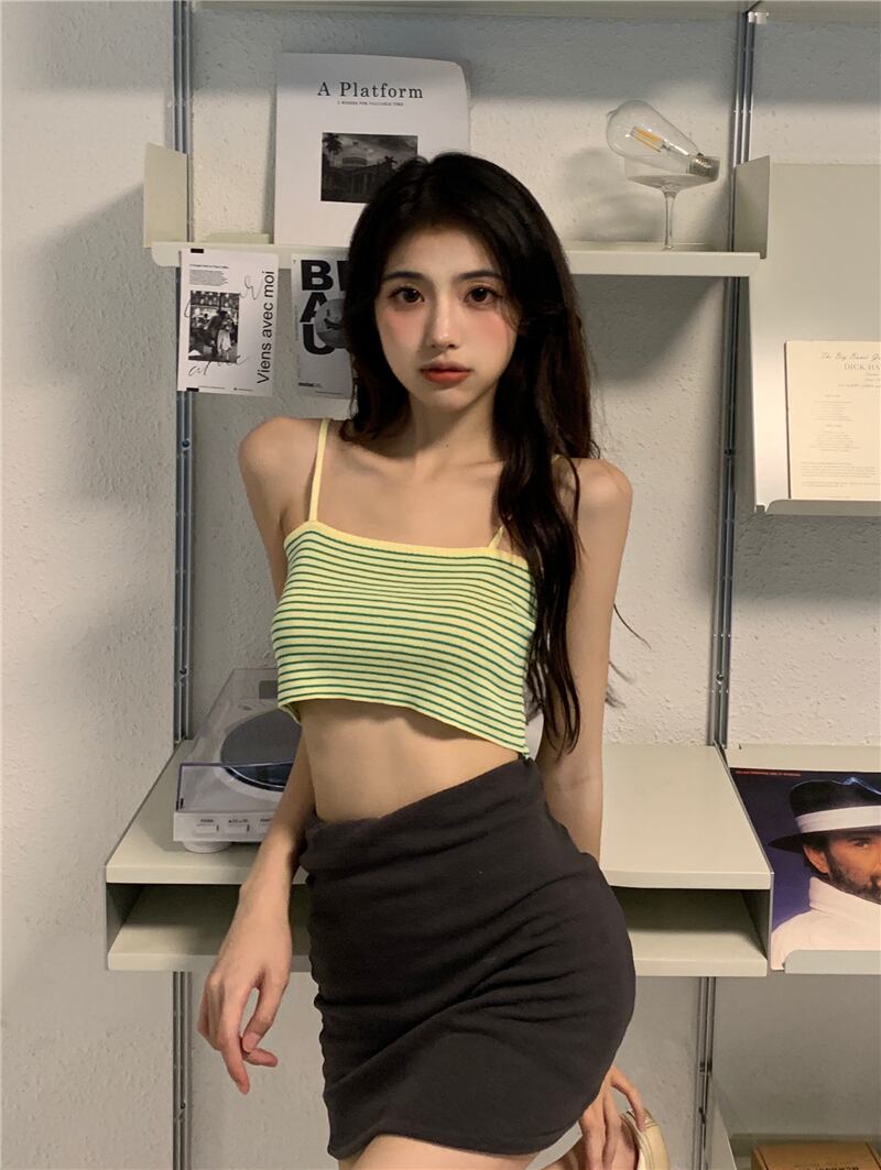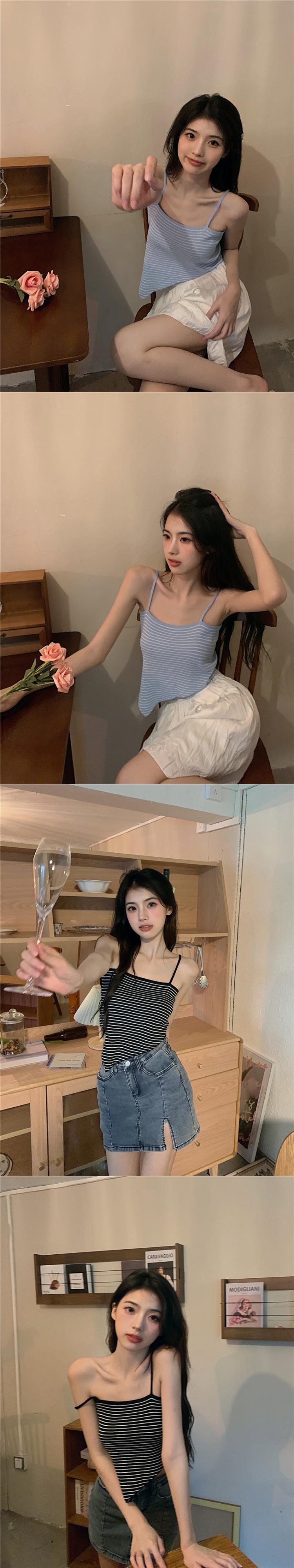 ストライプニットサマーショートトップス 大人ガーリー スウィート キュート カジュアル 夏物 ピュア ガールズファッション37610154479
