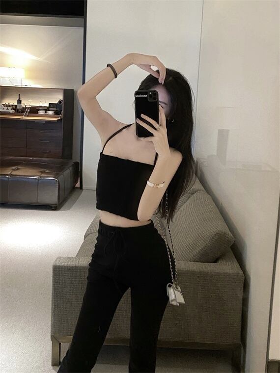 トップス ブラックハイウェストウェストカジュアルレッドサマー ストリート 夏物 ガールズファッション12943390672