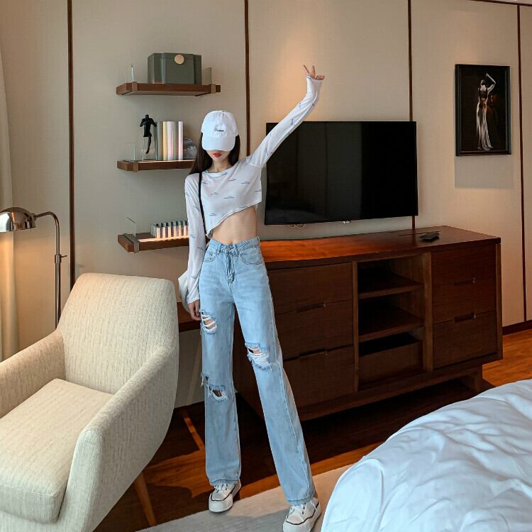 サマー薄手ルーズジーンズ ハイウェストパンツ 夏物 ガールズファッション69311936585