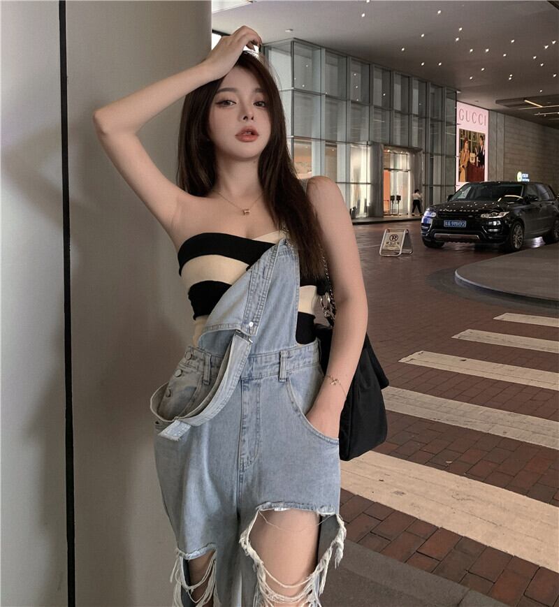 カラーストライプニットトップス ルーズサマー ストリート 夏物 ガールズファッション58497768694
