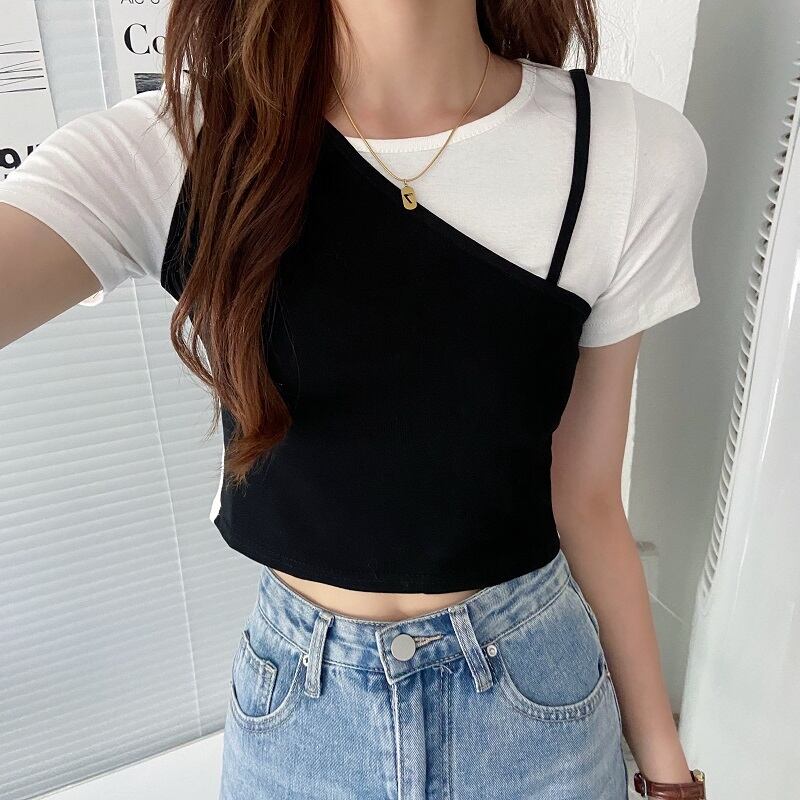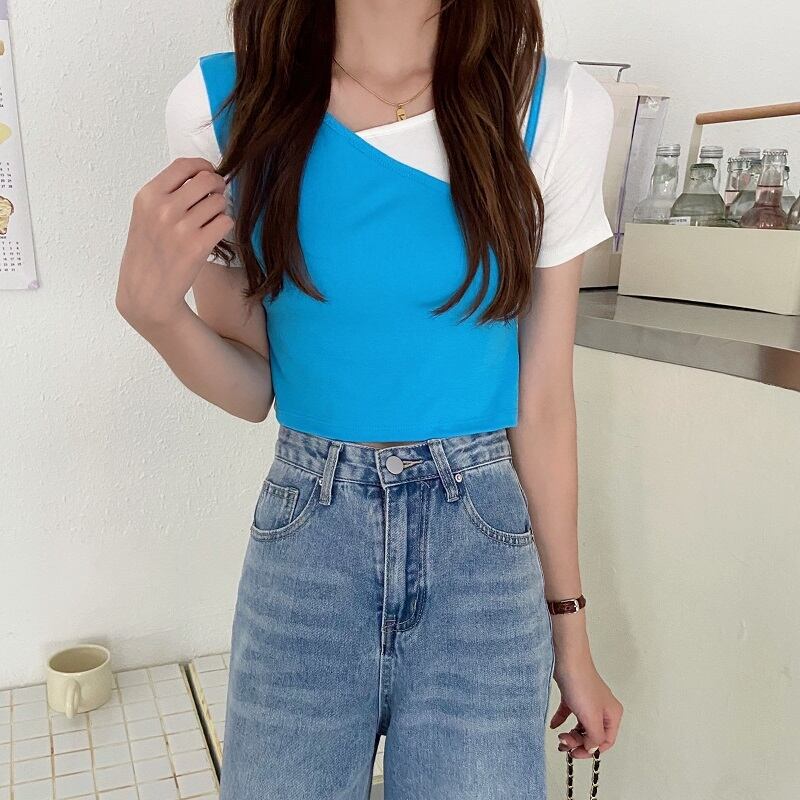 カラーブラウス サマー薄手ショートTシャツ 大人ガーリー スウィート キュート カジュアル 夏物 ステッチ ガールズファッション63985193864
