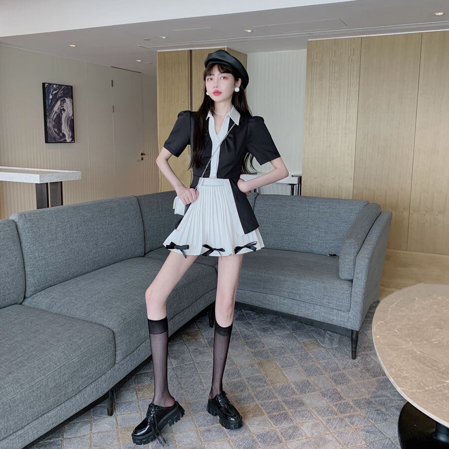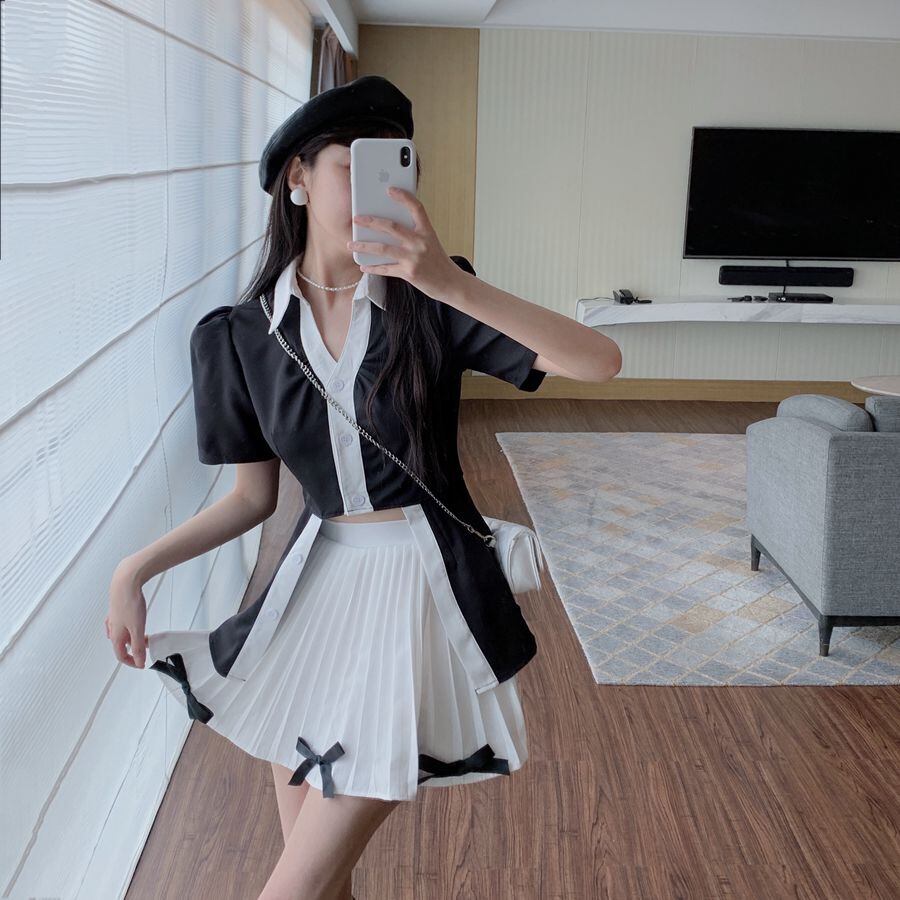 カラーシャツ トップス レディースリボンハイウェストウェストプリーツスカート サマードレス 大人ガーリー スウィート キュート カジュアル 夏物 ガールズファッション48801415242