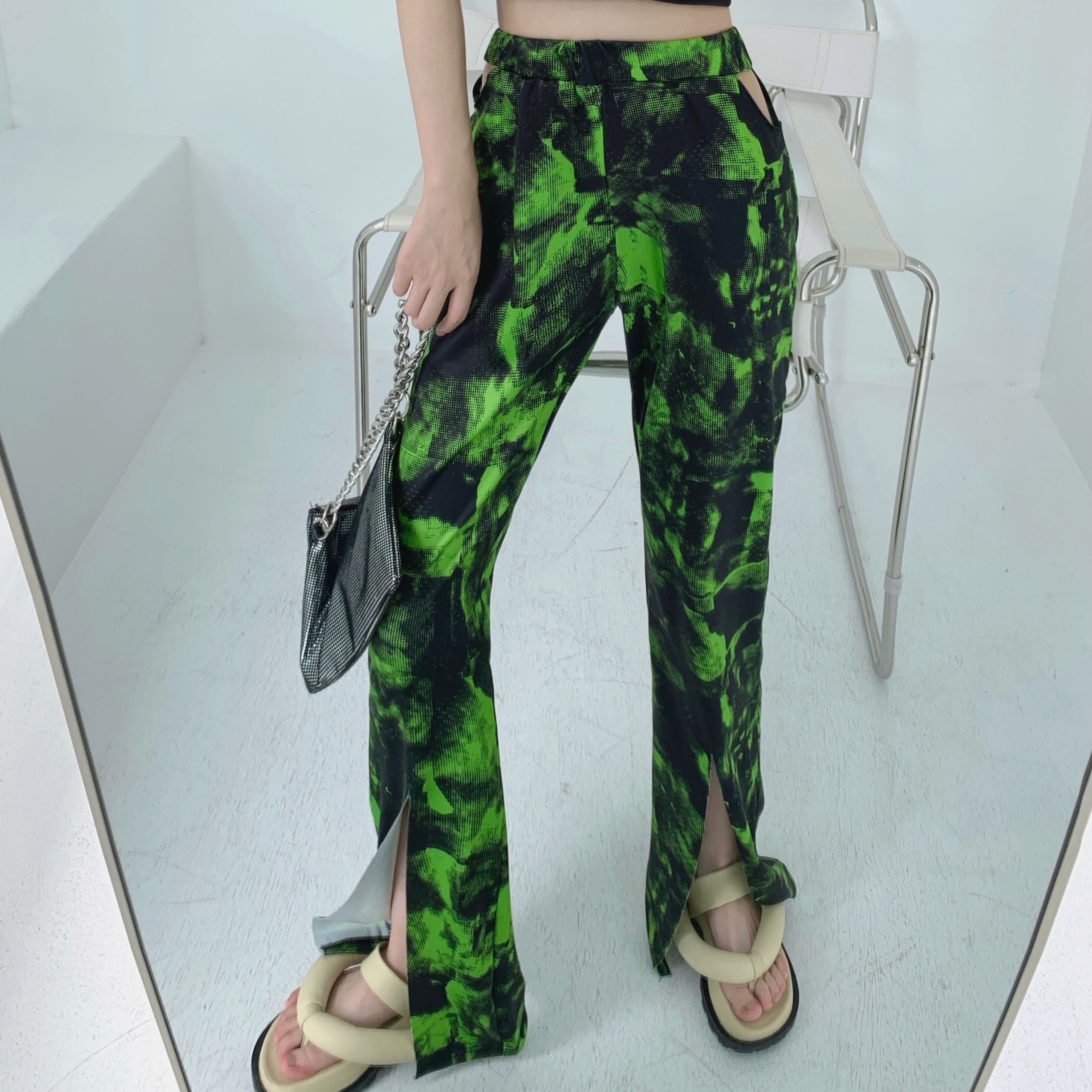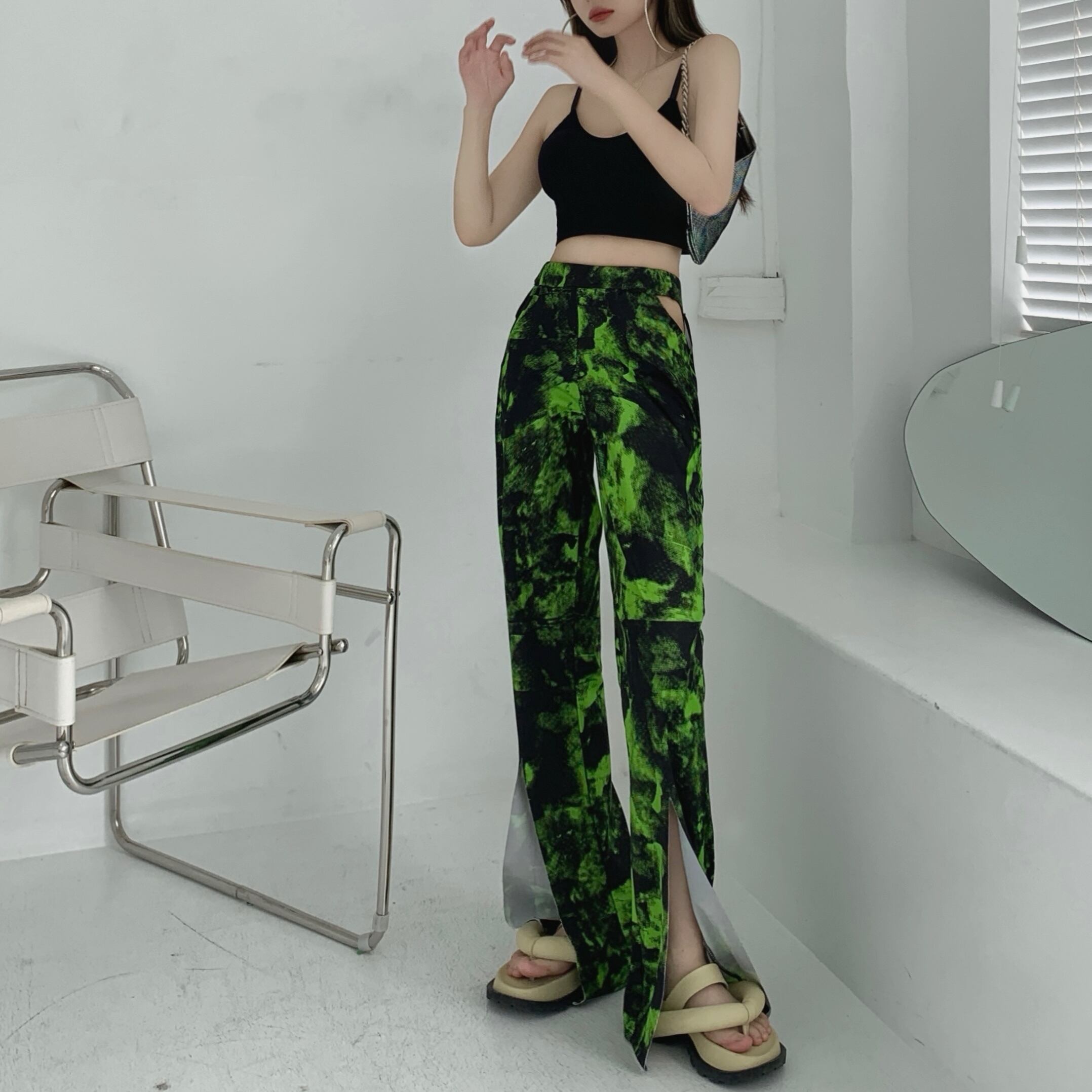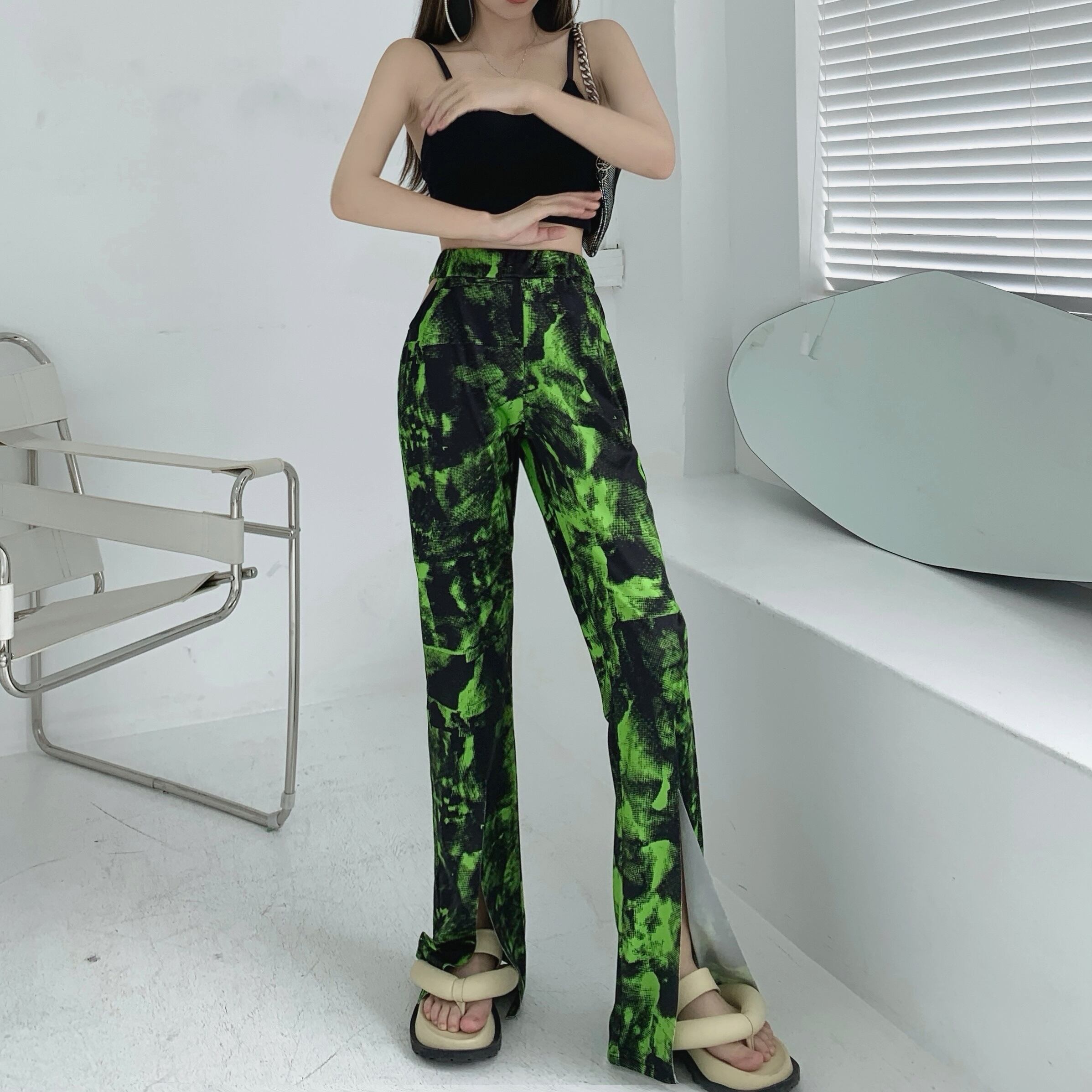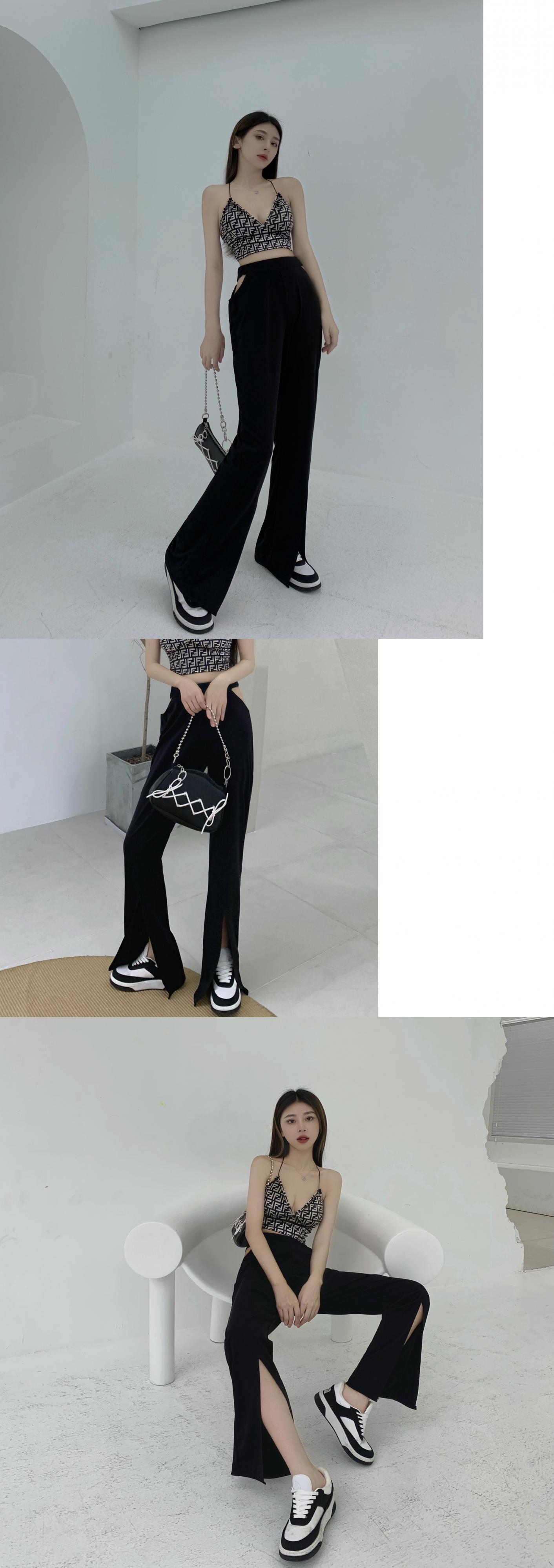 カジュアルパンツ サマーハイウェストウェスト薄手ブラック ストリート 夏物 ガールズファッション88642098310