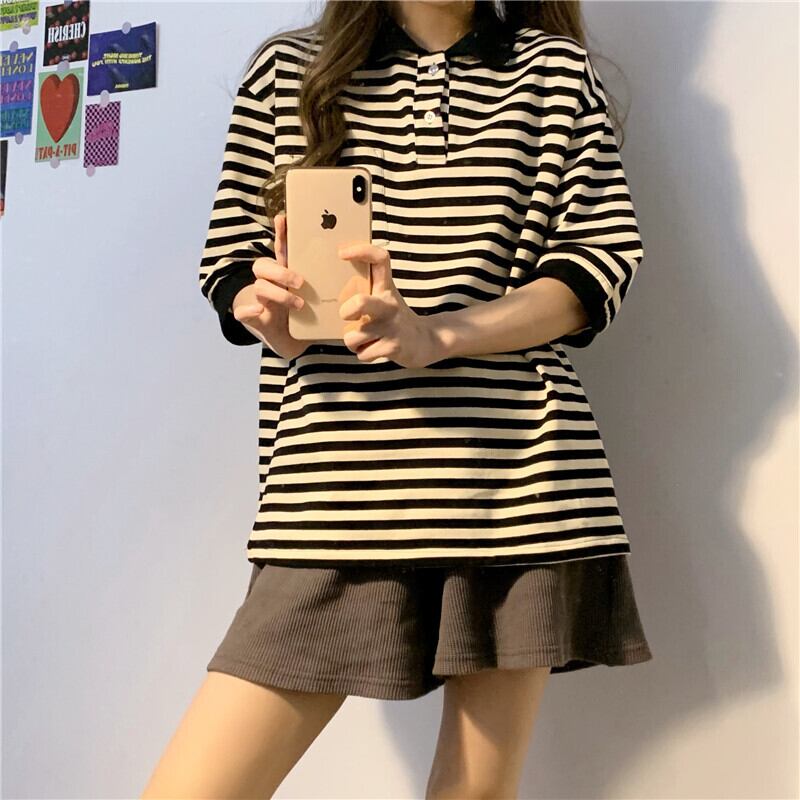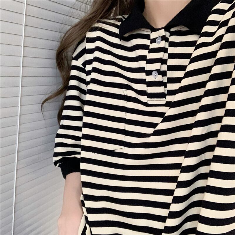 スタンダードカラーストライプTシャツ サマールーズトップス カジュアル レトロ 大人ガーリー スウィート キュート 夏物 ガールズファッション86801941334