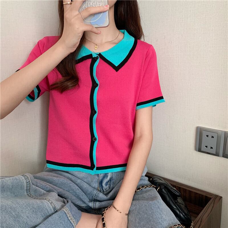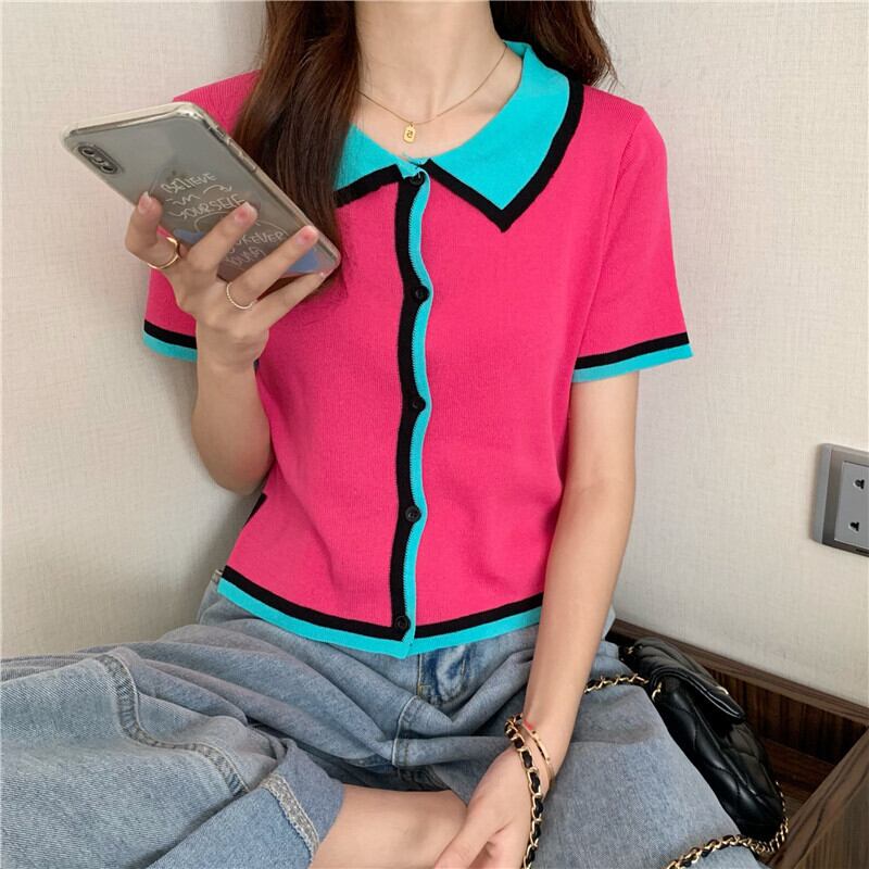 スタンダードカラー薄手ショートセーター サマーカーディガンジャケット レトロ 大人ガーリー スウィート キュート カジュアル 夏物 ガールズファッション40708639236
