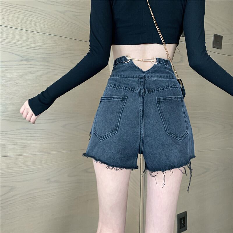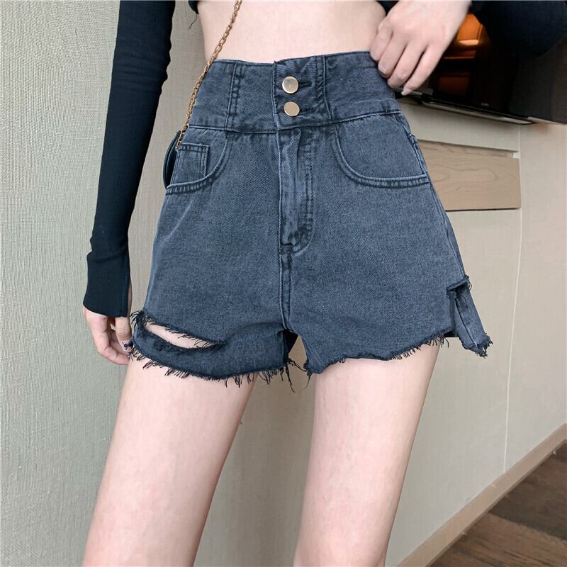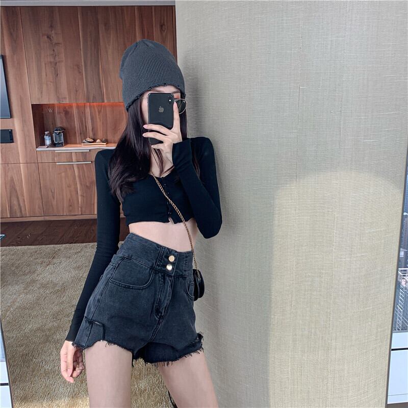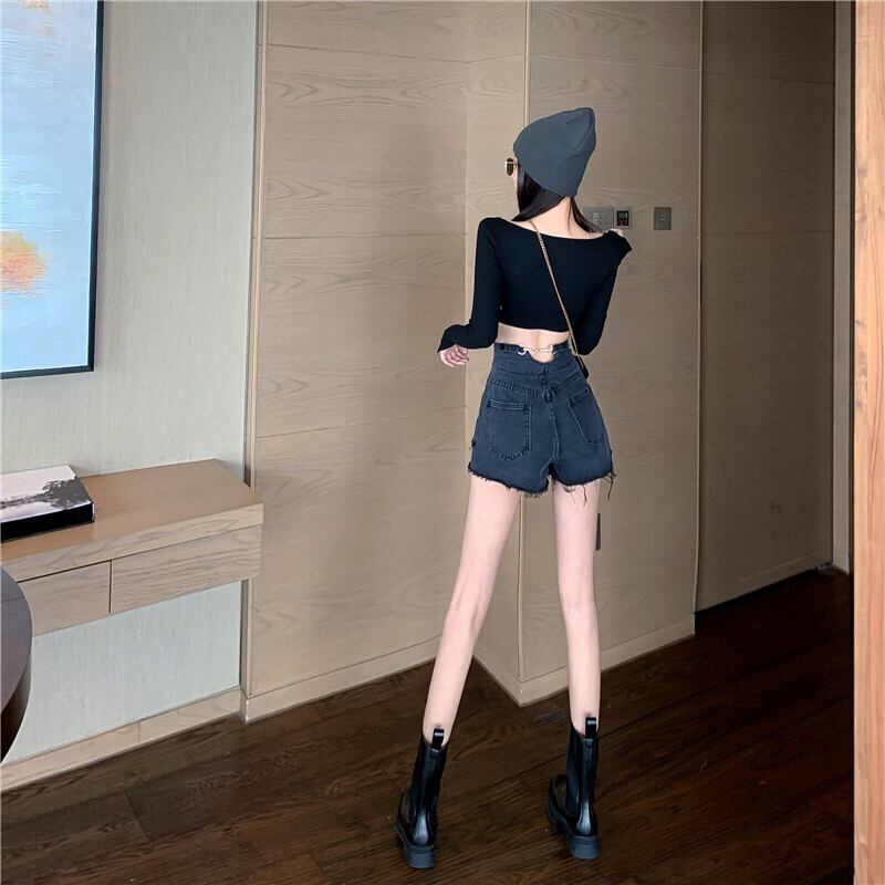 ジーンズ サマースタンダードブラックカジュアルパンツ ハイウェスト レトロ 夏物 ショーツ ブルマー ガールズファッション12989167787