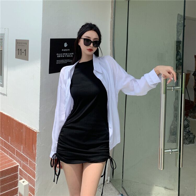 サマーブルーホワイトルーズカーディガンシャツ ドレス ロング 夏物 ガールズファッション68619920875