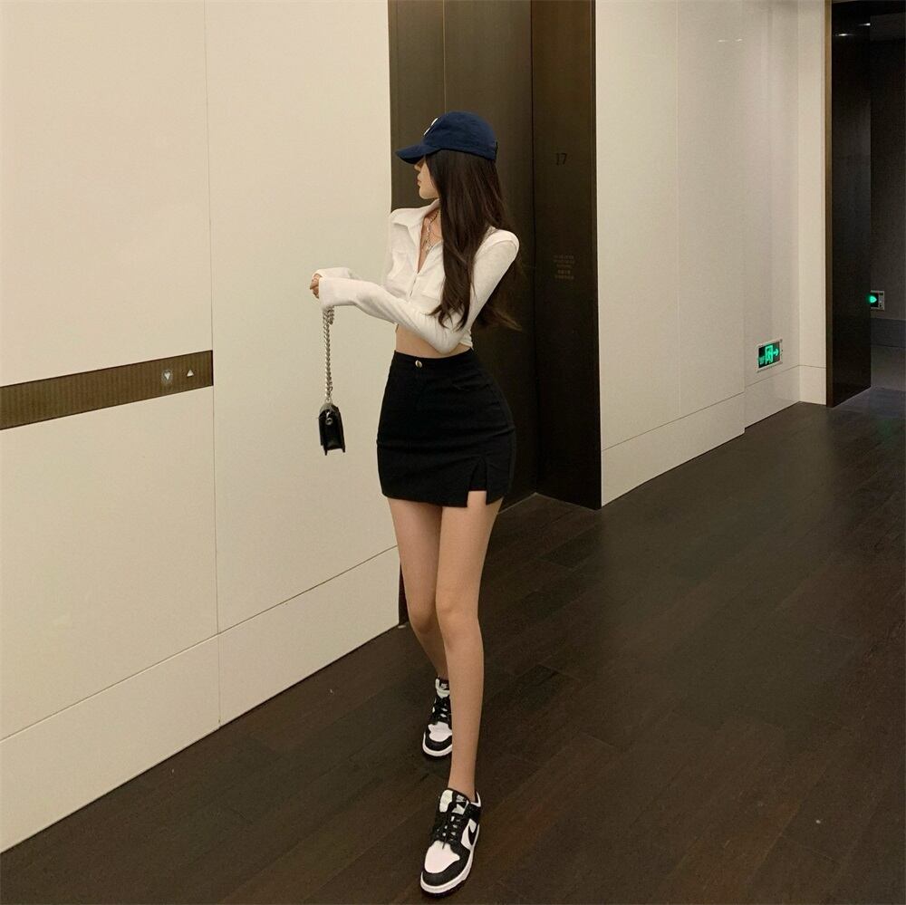 スタイルスタンダードスカート サマーブラックハイウェストウェストAライン レトロ 夏物 ガールズファッション99913035100