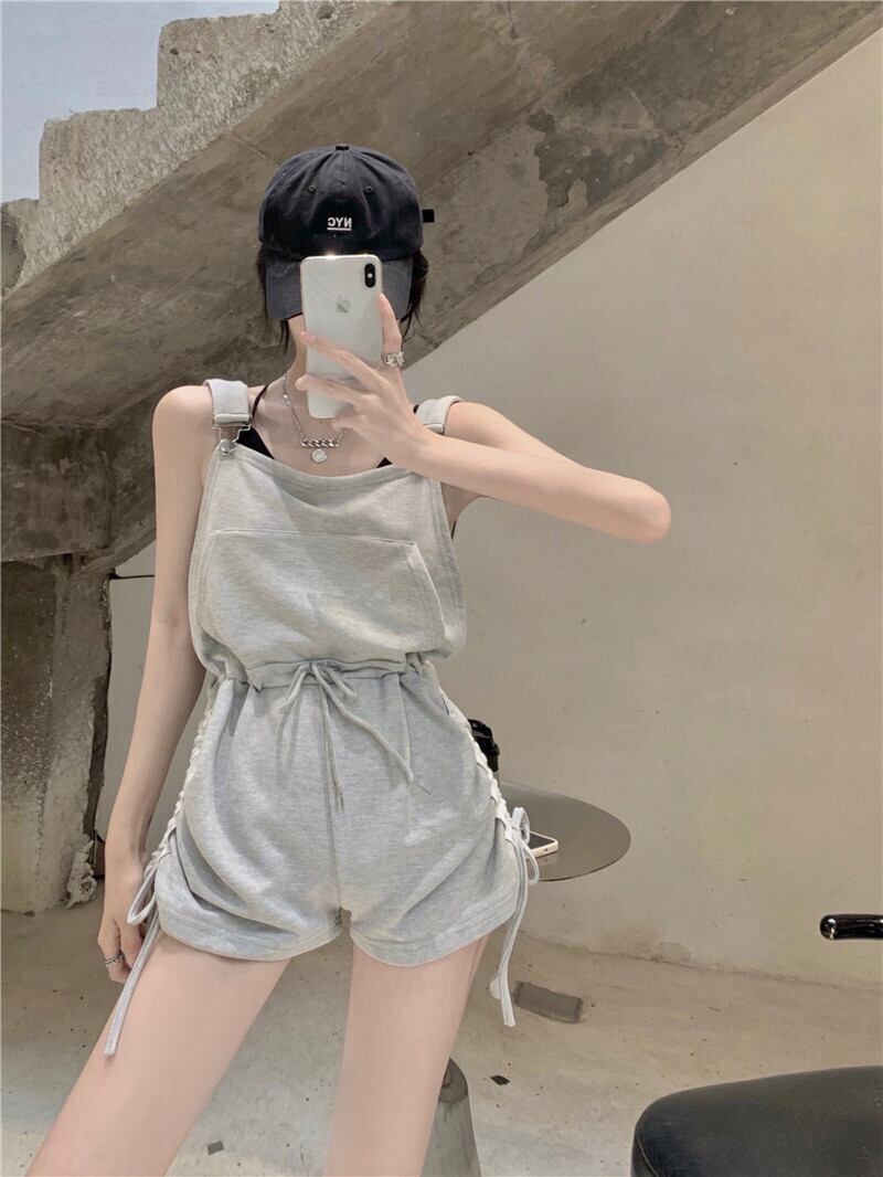 ギャザージャンプスーツ オールインワン サマーカジュアル ハイウェスト 夏物 ガールズファッション62517510525