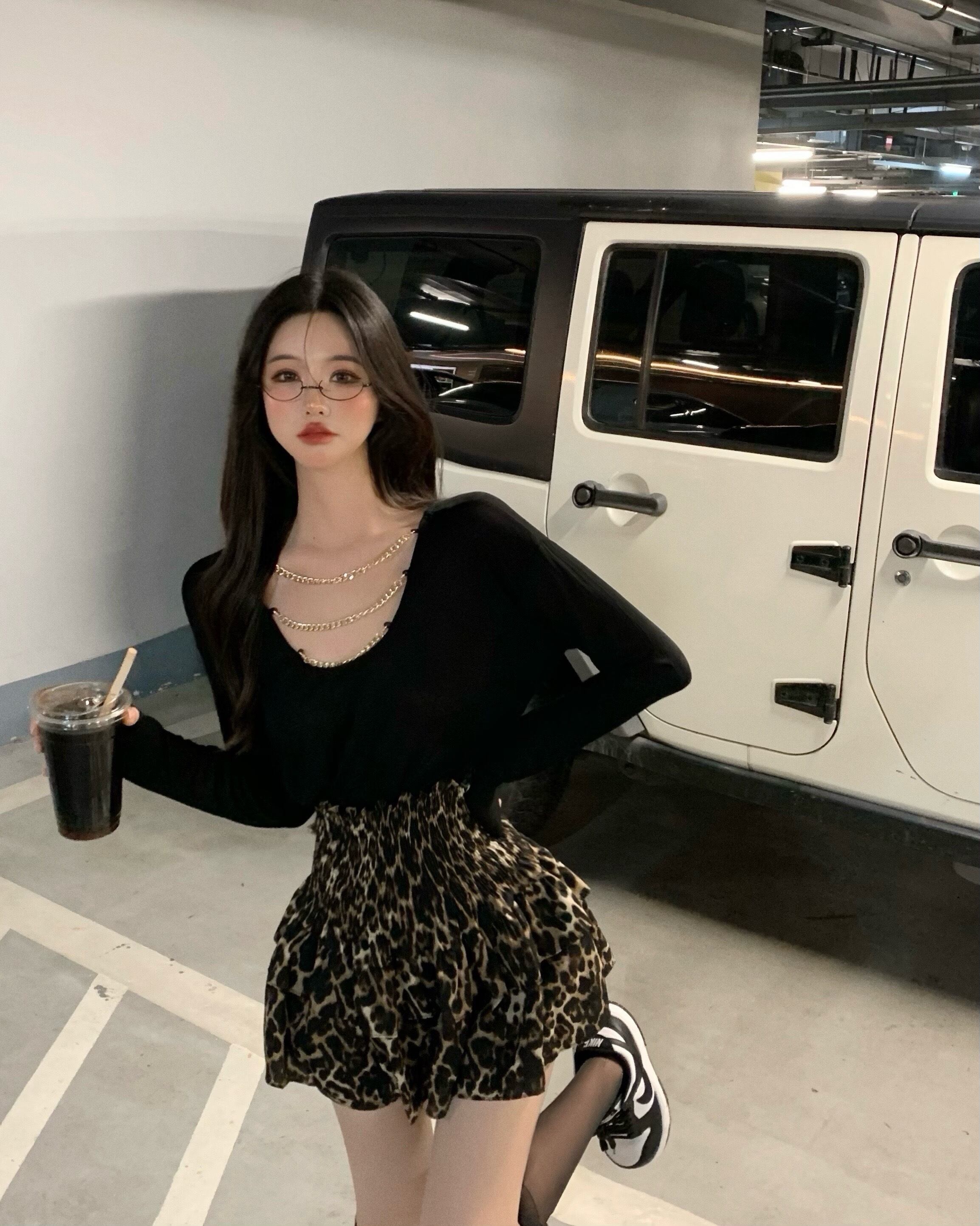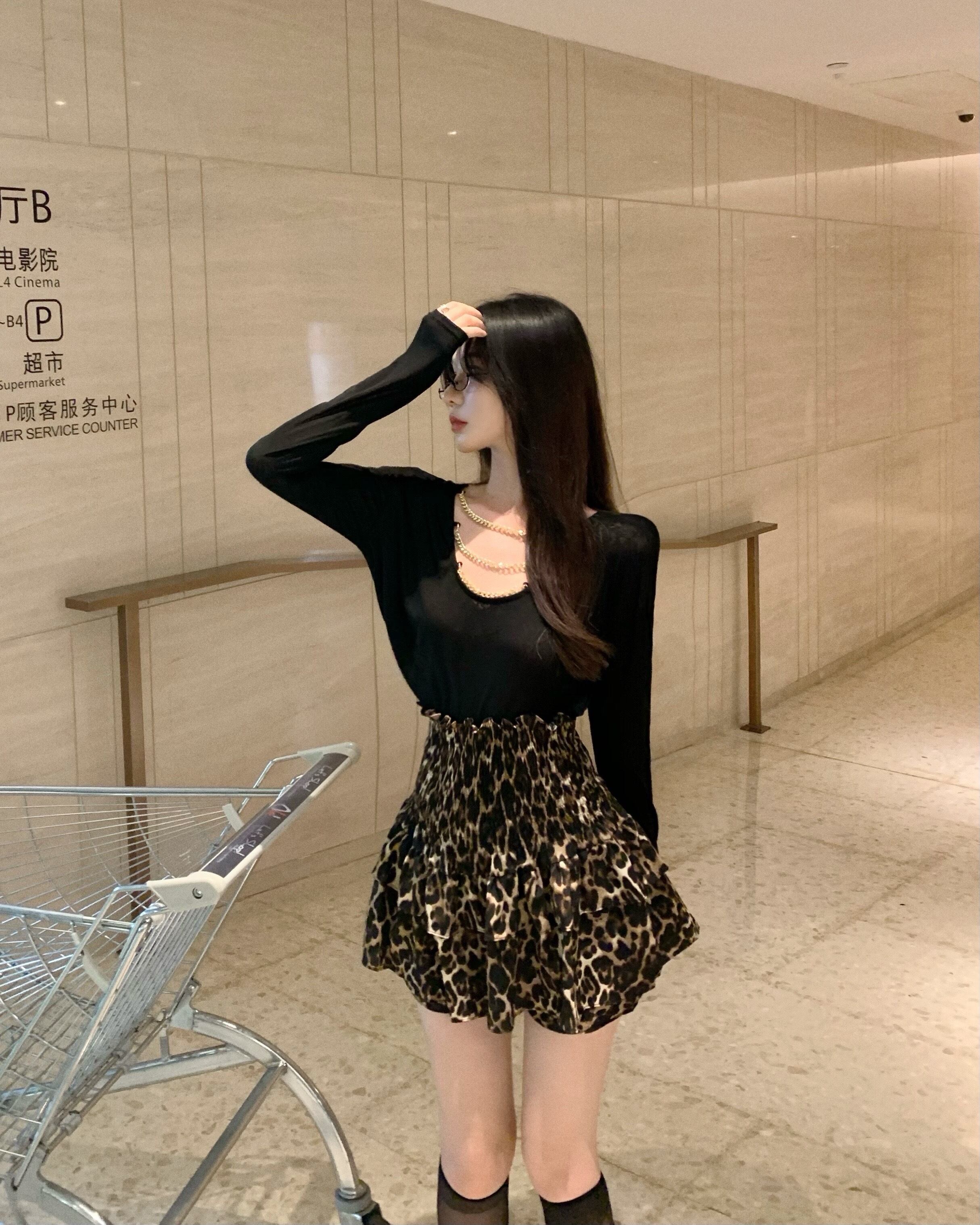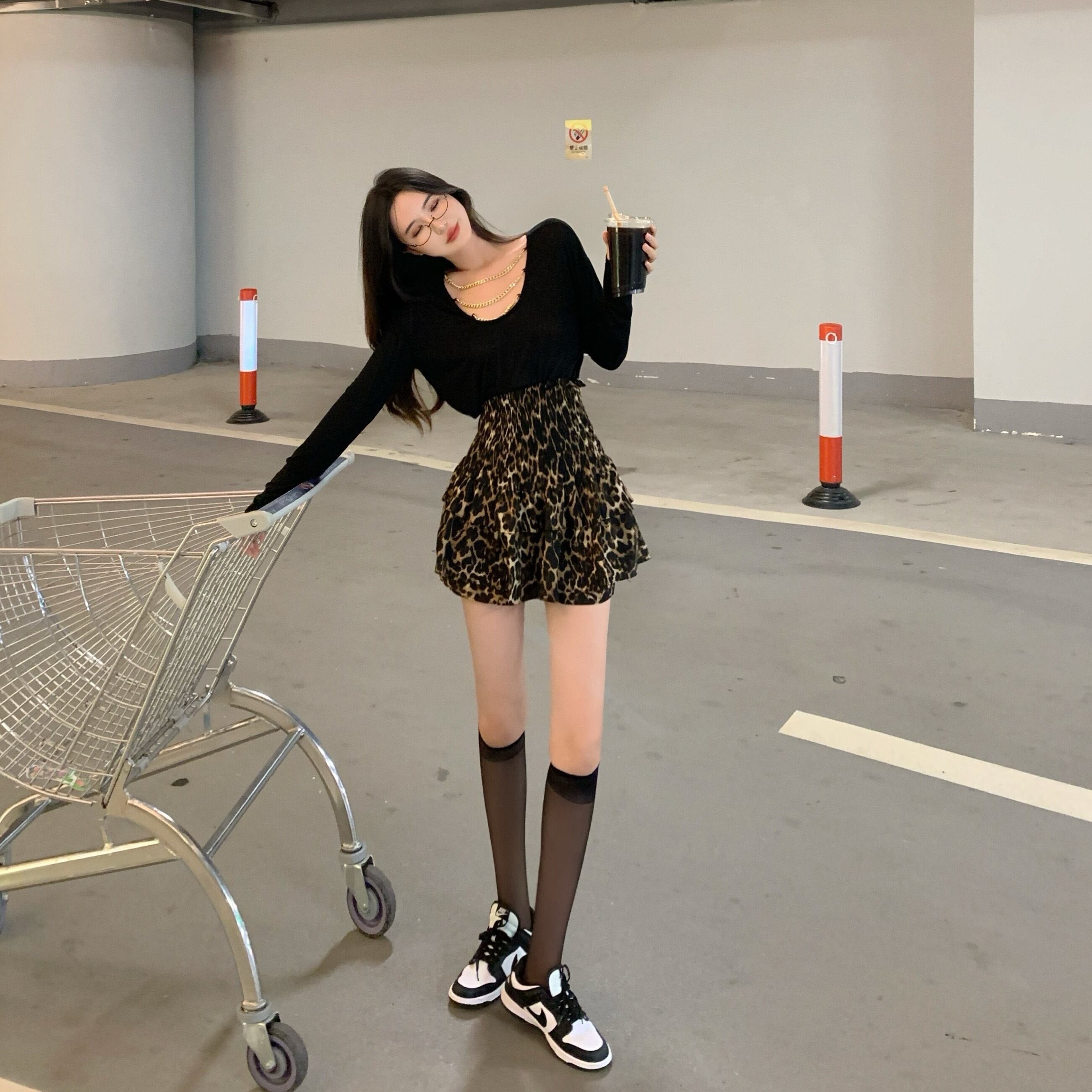 スタイルスタンダードレオパードプリント柄スカート サマーハイウェストウェストAライン薄手 レトロ 夏物 ガールズファッション94526704788