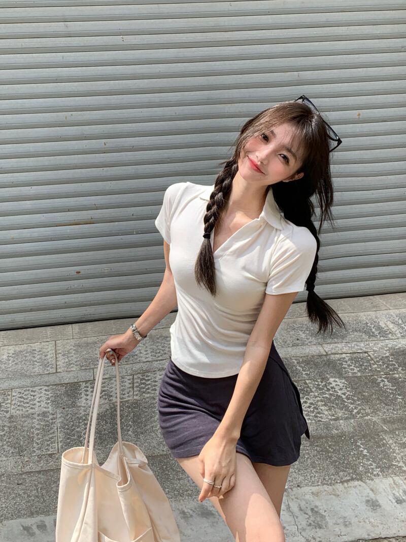 カラーTシャツ サマーカジュアルホワイトトップス レッド 夏物 ガールズファッション82587192574