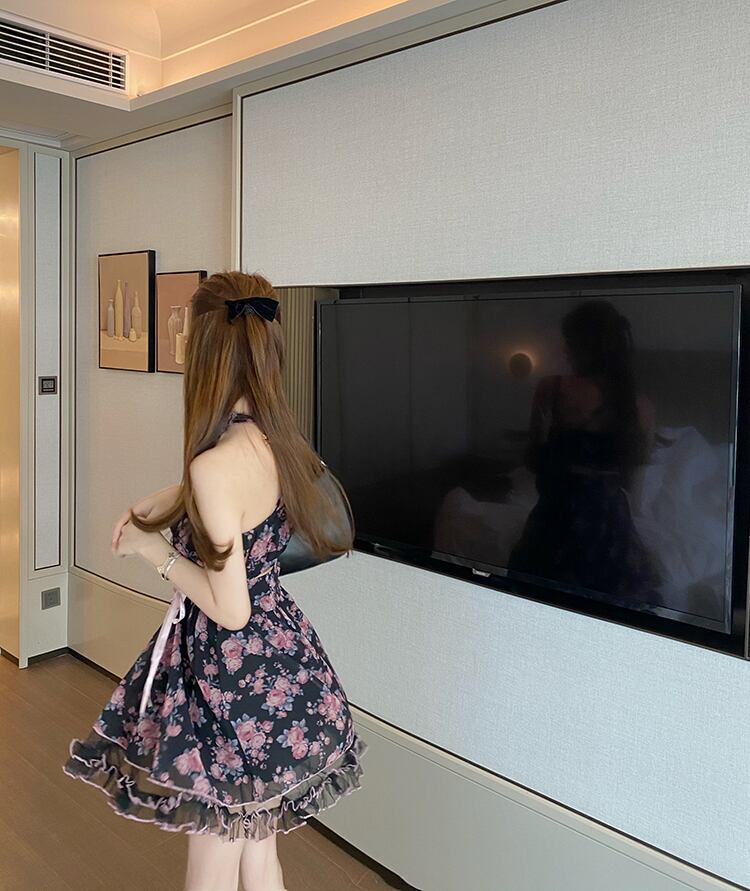 フローラルサマーホルターショートハイウェストウェストAラインスカート 夏物 花柄 ガールズファッション31494307292