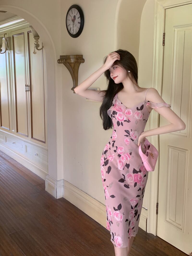 スタンダードフローラルドレス ショートトップス サマー レトロ 夏物 花柄 ガールズファッション21974419222