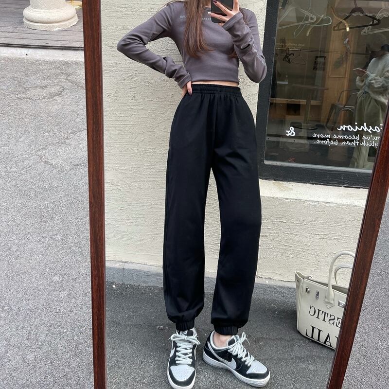 パンツ サマーハイウェスト薄手ルーズセーター ブラック 夏物 ガールズファッション60114961897
