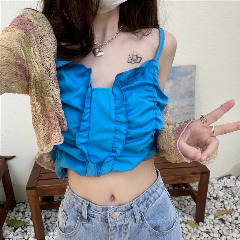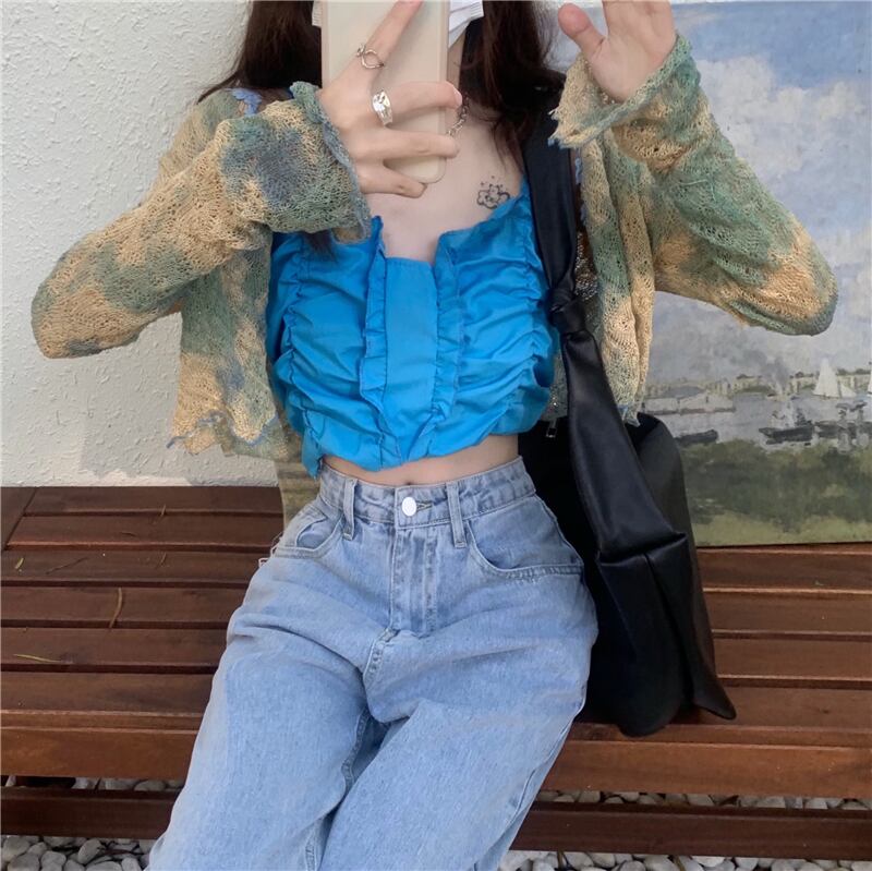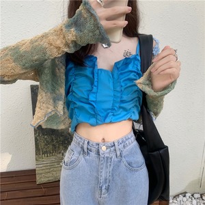 サマーブループリーツショートカーディガン 大人ガーリー スウィート キュート カジュアル 夏物 ガールズファッション79126435168
