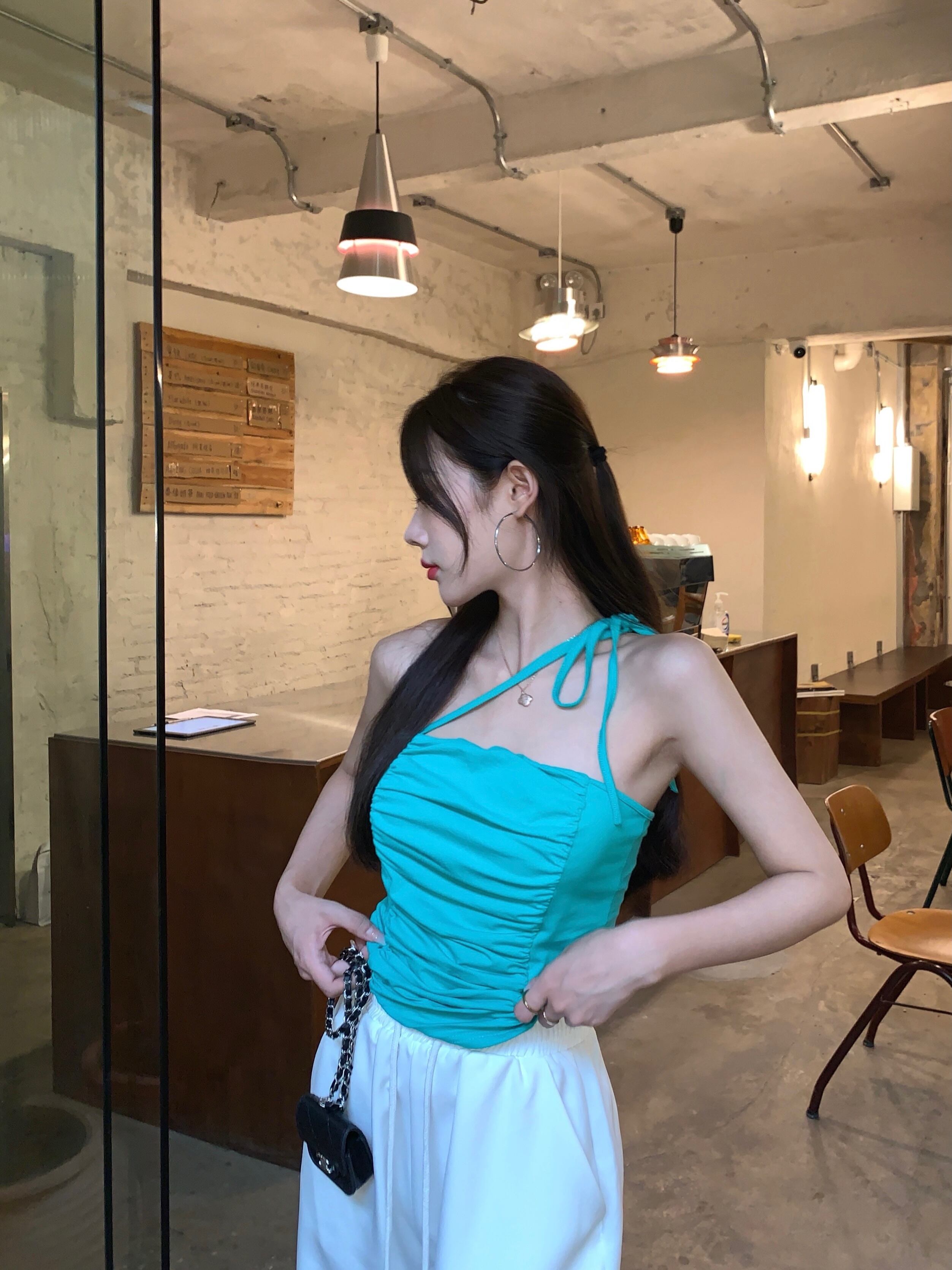 プリーツホルターサマーショートブラックトップス 夏物 ガールズファッション22279944015