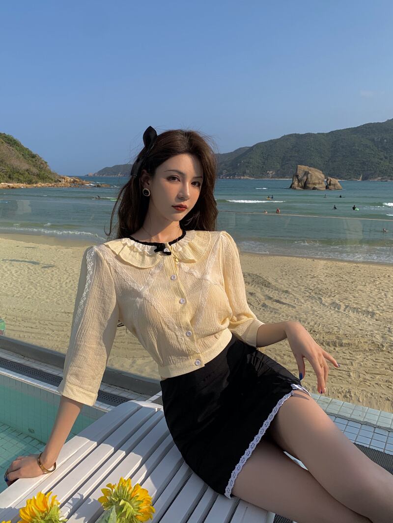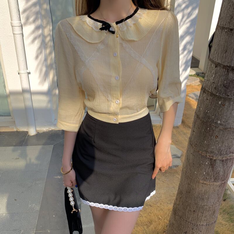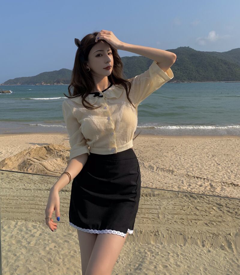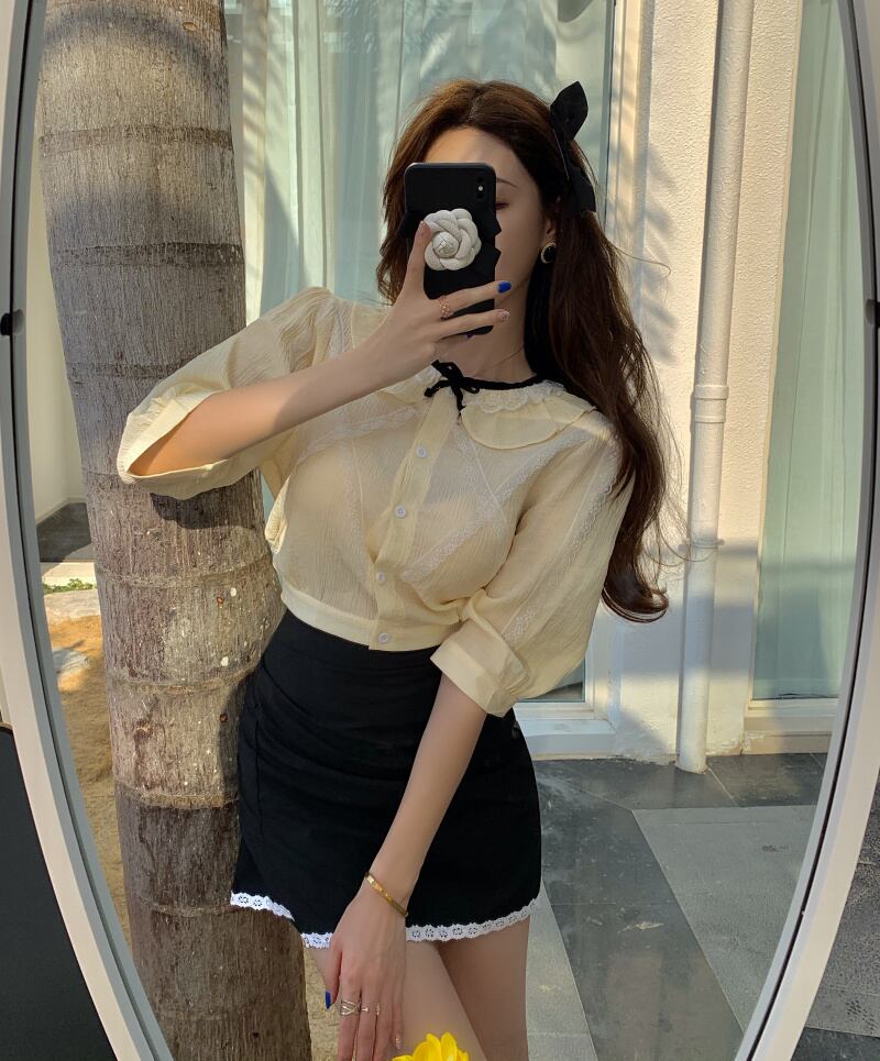 カラーショートシャツ レーススカート レッド ストリート 大人ガーリー スウィート キュート カジュアル ガールズファッション32567819940