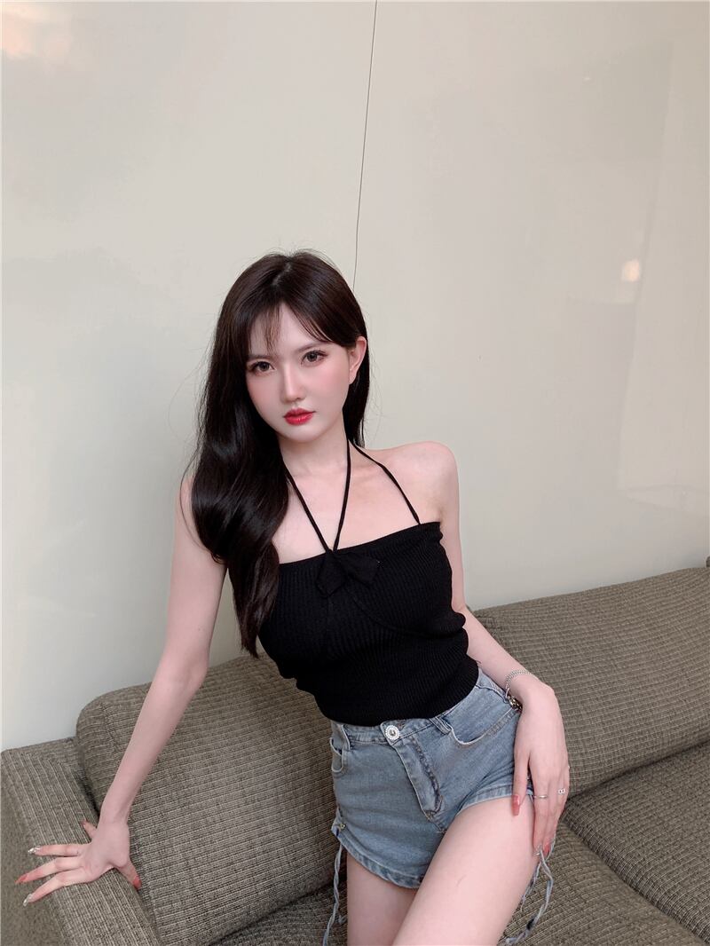 サマーリボンホルタートップス ニット 夏物 ピュア ガールズファッション73363334990