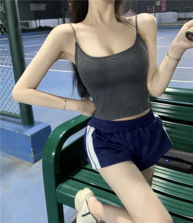 色:グレーのベスト,ブルーショートパンツ,ブラックカーディガン