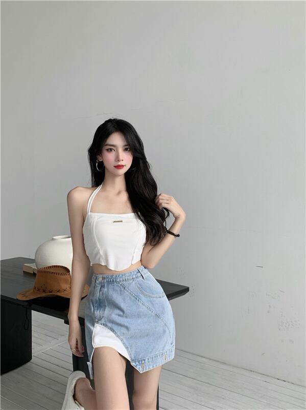 スカート サマーハイウェストウェスト薄手Aライン 夏物 ステッチ ガールズファッション33099927956