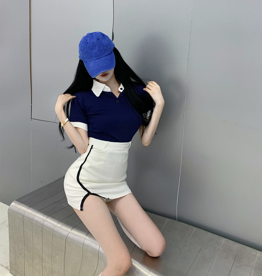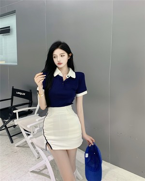 スタンダードカラー半袖スリーブTシャツ ウェストスカート サマー ショート レトロ ハーフスリーブ 夏物 ガールズファッション8866302020