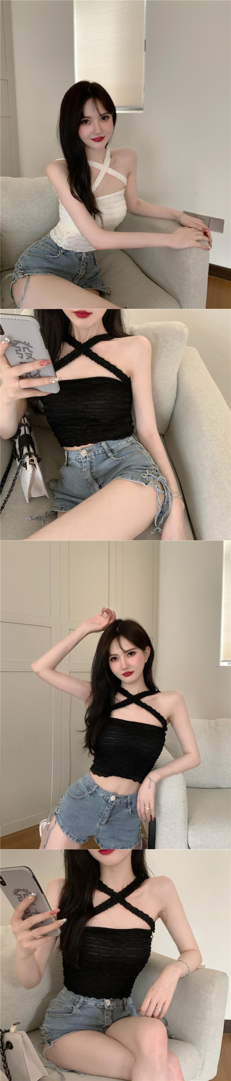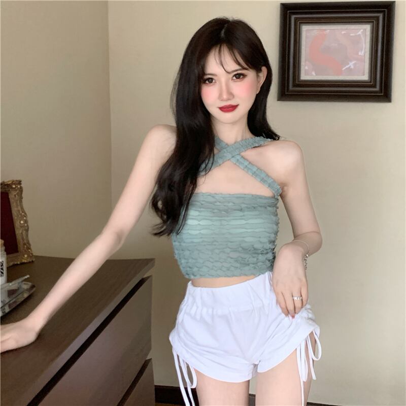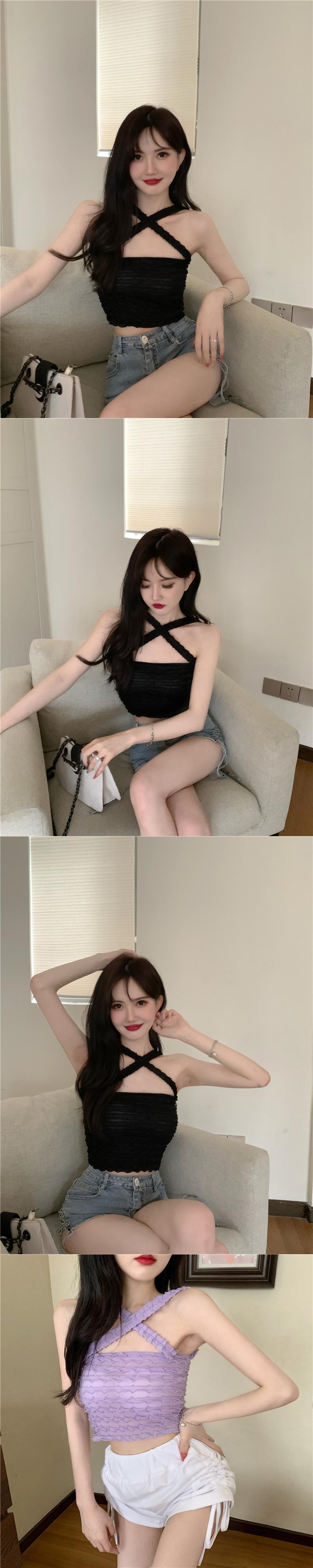 クロスホルタートップス サマープリーツ ブラウス 大人ガーリー スウィート キュート カジュアル 夏物 ガールズファッション26519112781