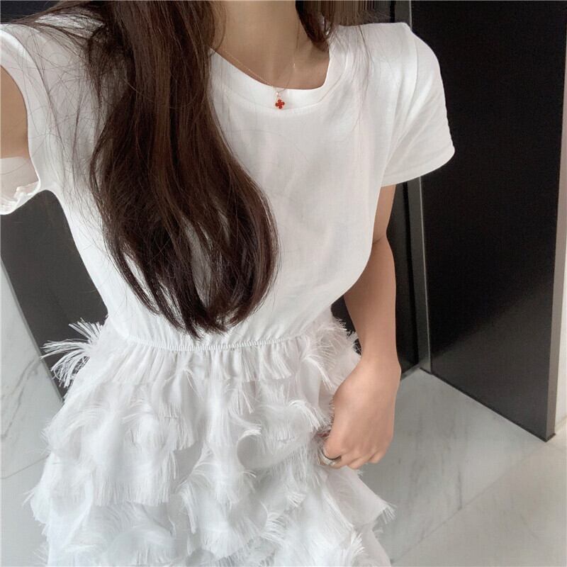 ホワイトスカート サマーウェスト薄手ドレス ロング 夏物 ガールズファッション75908294090