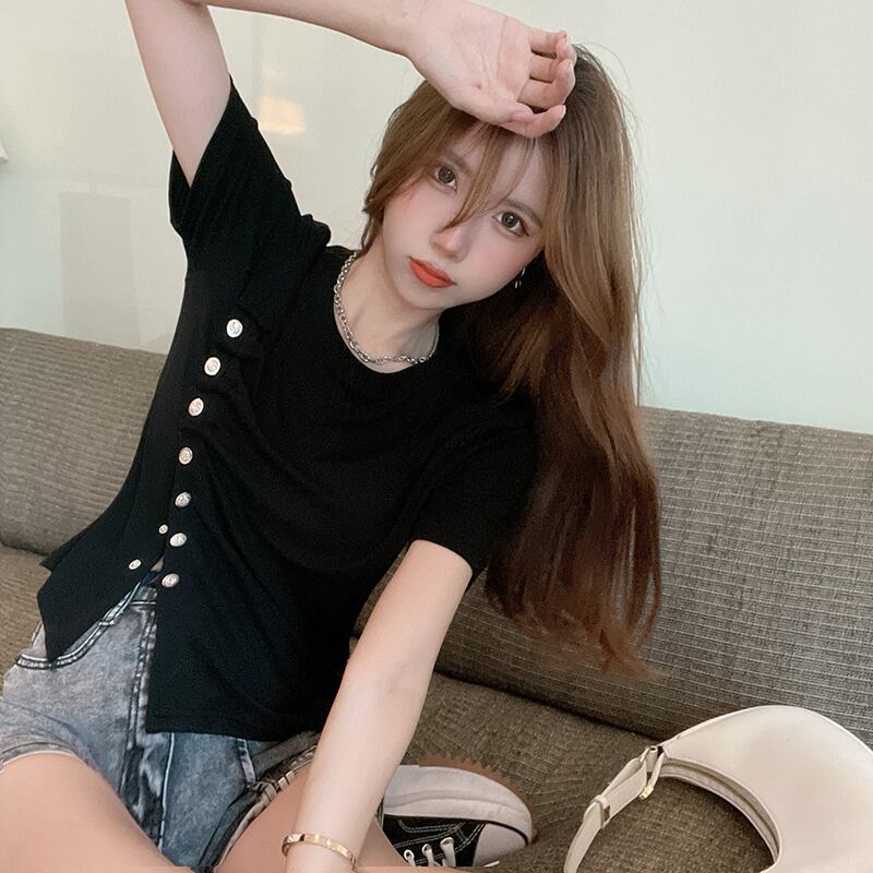 スリムソリッド カラープルオーバー Tシャツ サマー薄手トップス 夏物 ソリッドカラー ガールズファッション64606555751
