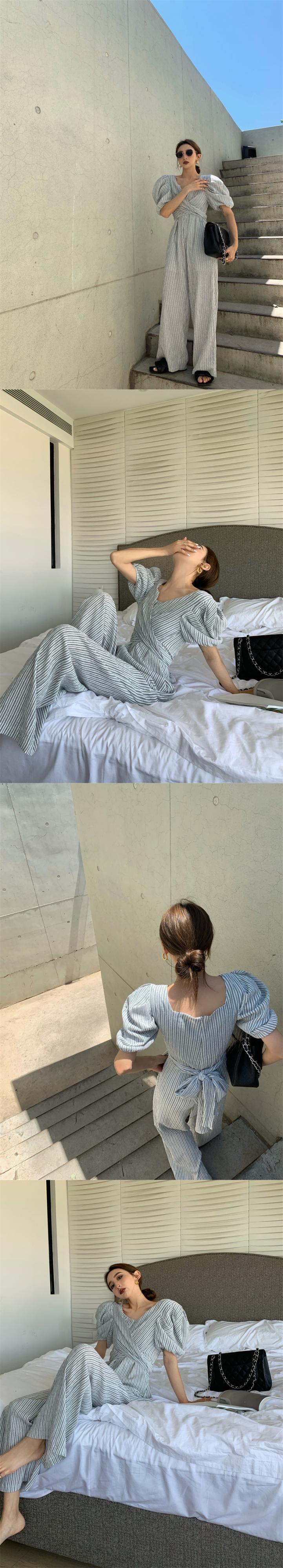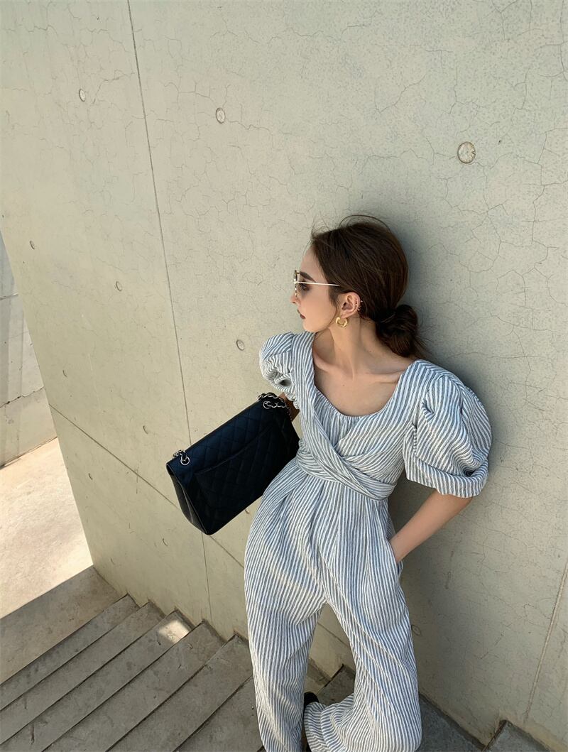 スタイルスタンダードプリーツルーズストライプジャンプスーツ オールインワン サマーレッドウェストワイドレッグ レトロ 夏物 ワイドパンツ ガールズファッション82495729510