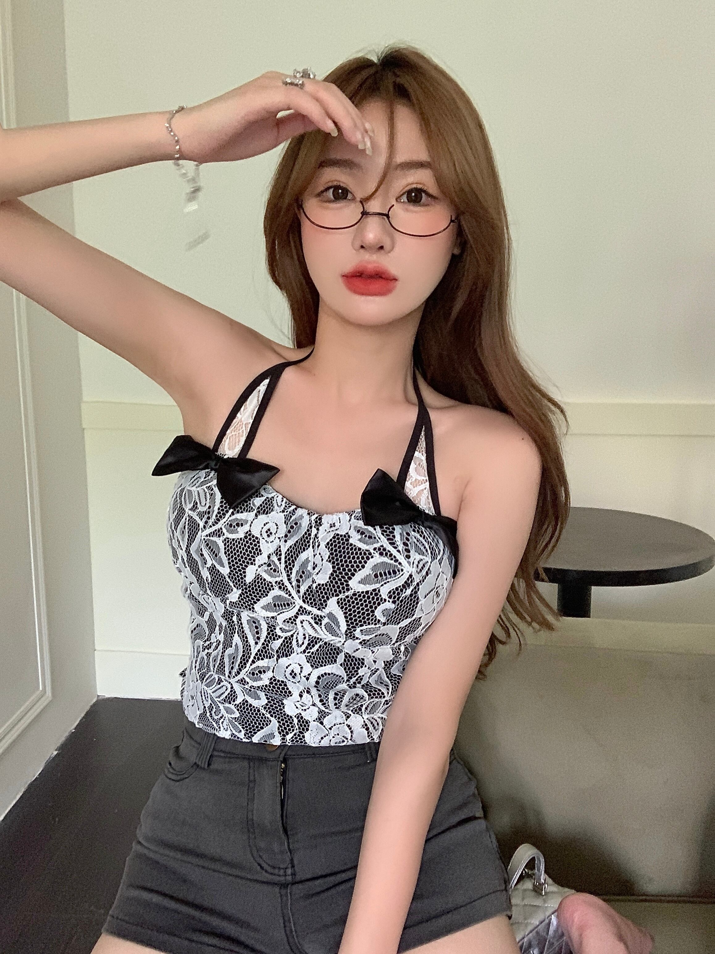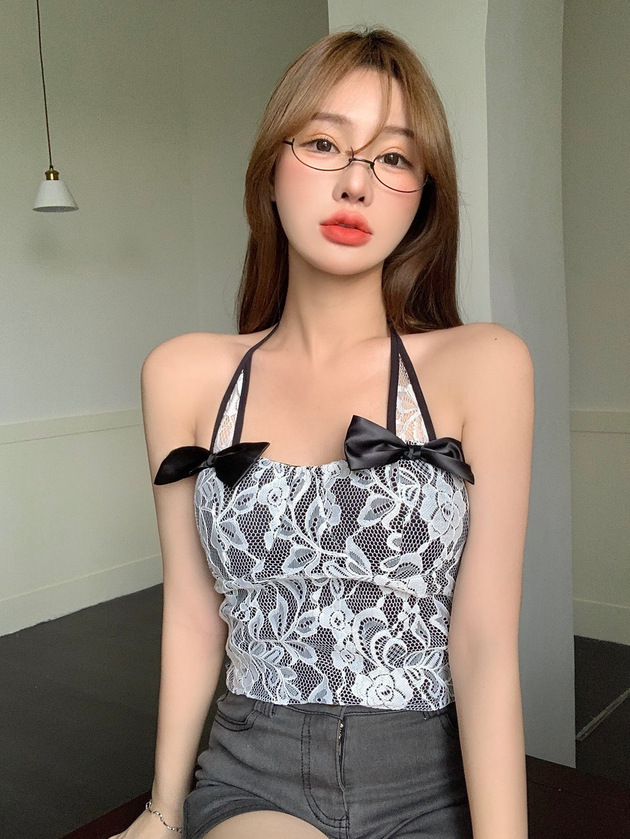 レースホルターサマーショートトップス リボン 大人ガーリー スウィート キュート カジュアル 夏物 ガールズファッション9294660445