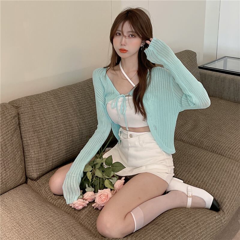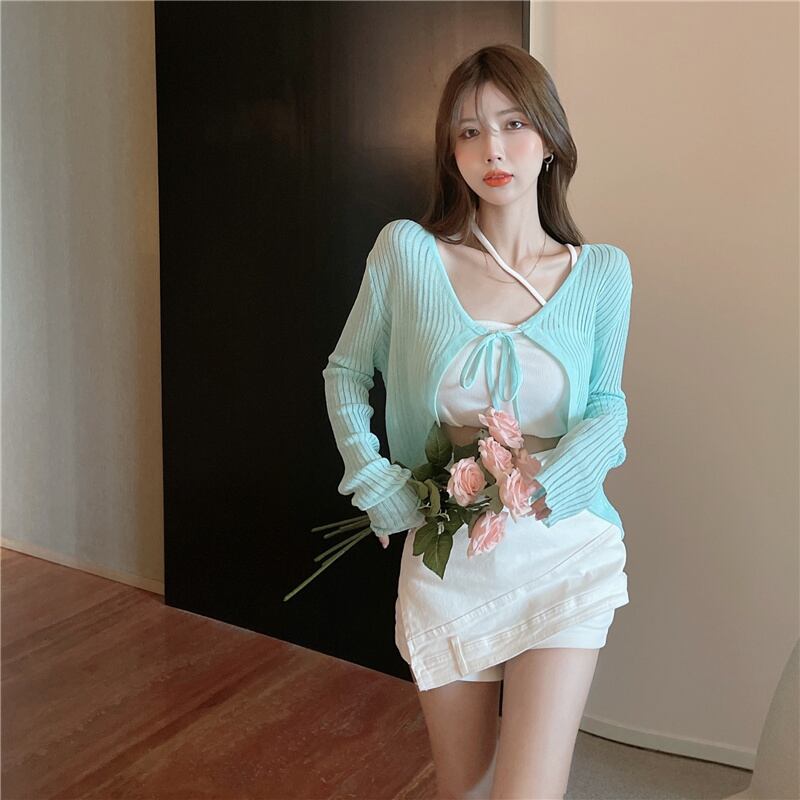 薄手トップス サマーショートセーター ロング レース 大人ガーリー スウィート キュート カジュアル 夏物 レースアップ ガールズファッション63393291124