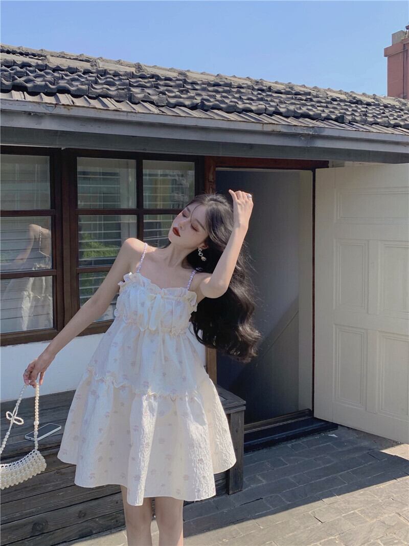 スタンダードフローラルドレス ルーズAラインスカート レトロ 大人ガーリー スウィート キュート カジュアル ふわふわ 花柄 ガールズファッション78356627430