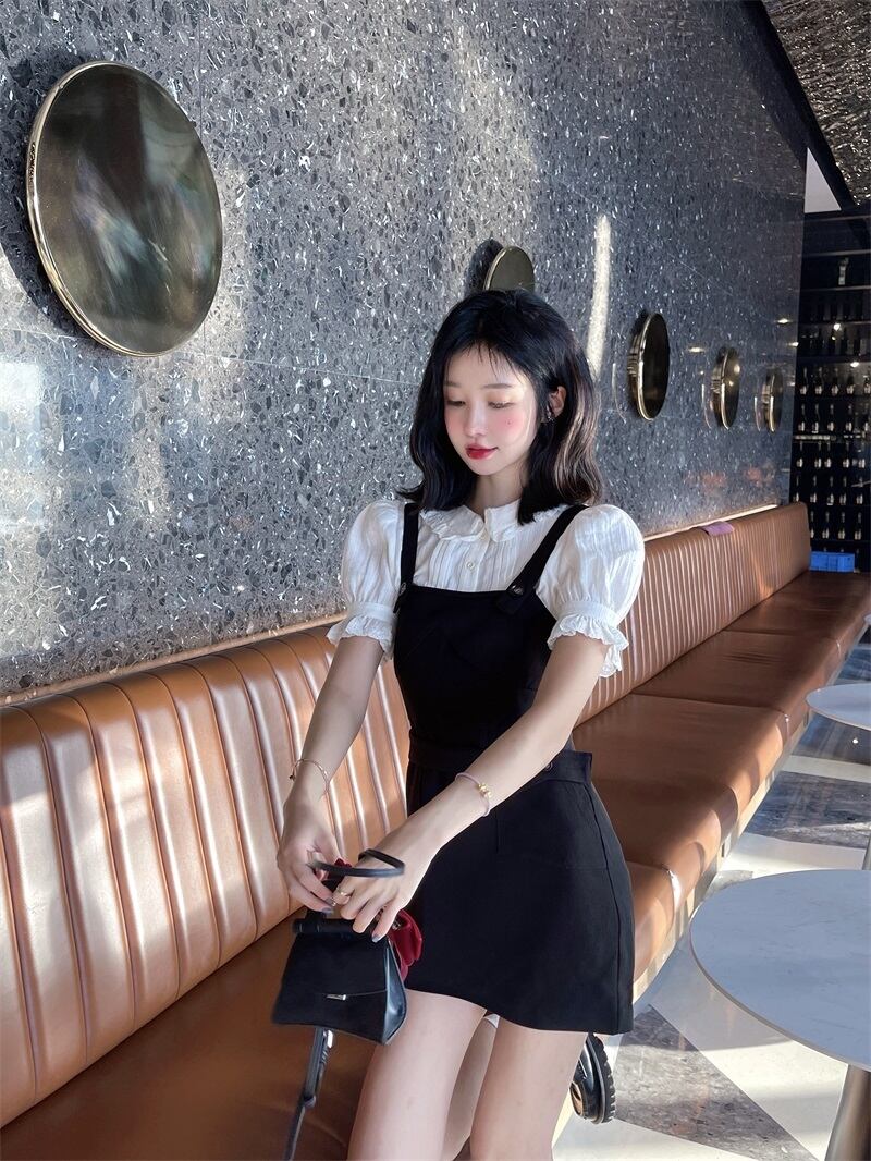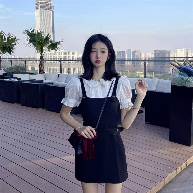 カラースリーブホワイトシャツ サマーウェストショートスカート ドレス 大人ガーリー スウィート キュート カジュアル 夏物 ガールズファッション15613524817