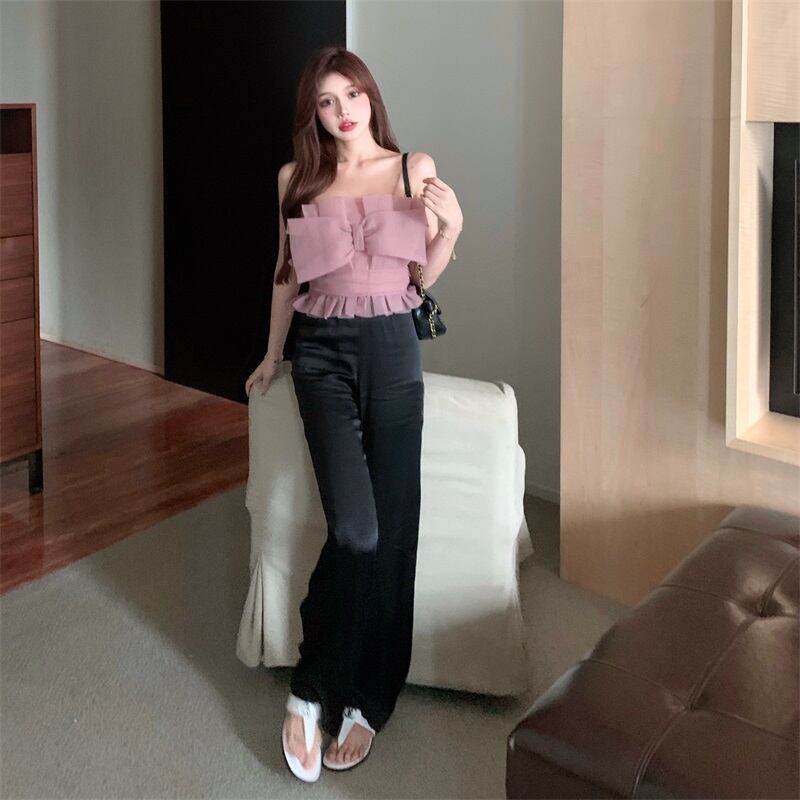 トップス サマーブラックカジュアルパンツ リボン 夏物 ガールズファッション29598719772