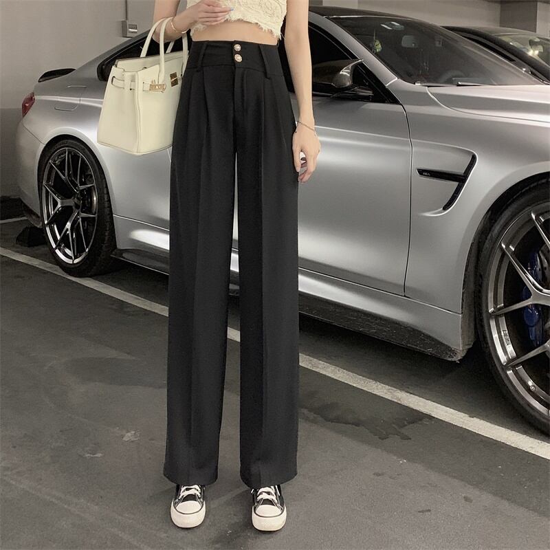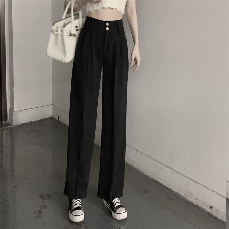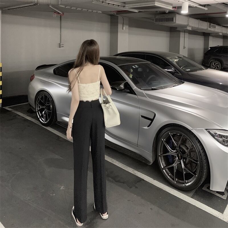 パンツ サマーハイウェストウェスト薄手ワイドレッグブラック 夏物 ワイドパンツ ガールズファッション216531546