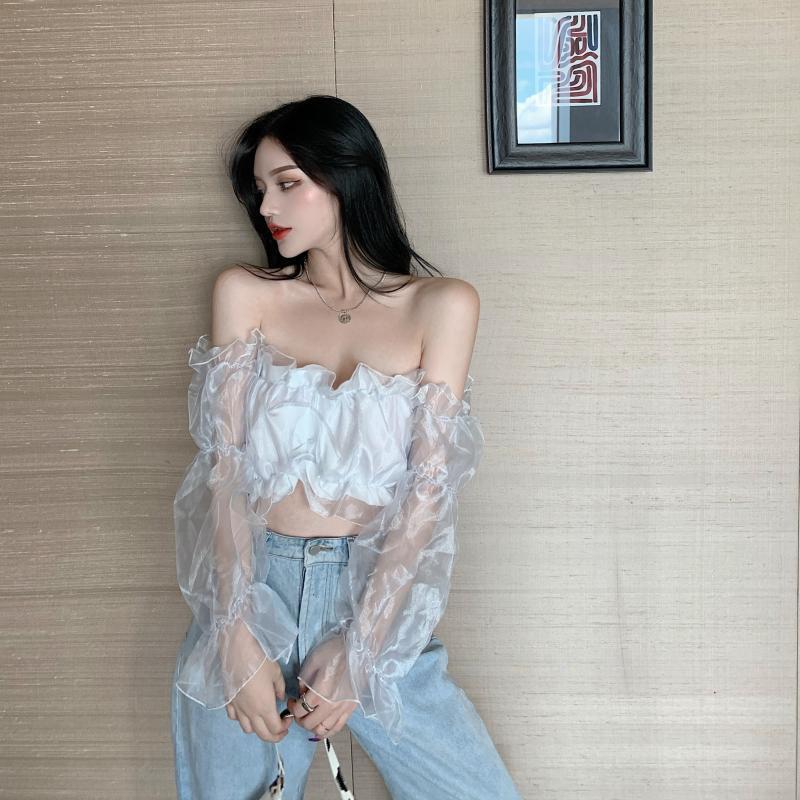 メッシュトップス レディースサマースリーブショートシフォンシャツ 夏物 ステッチ ガールズファッション25456560101