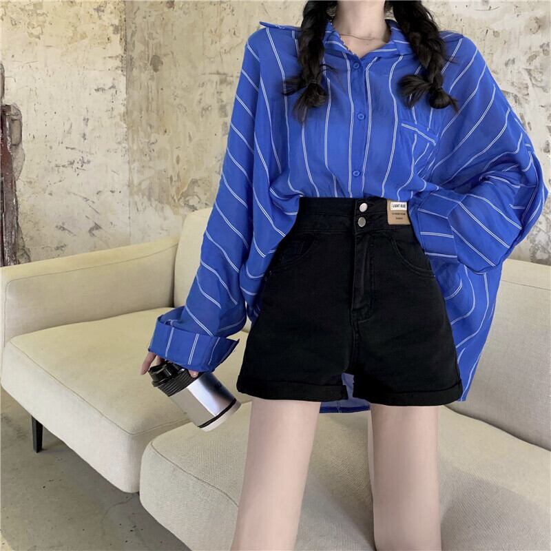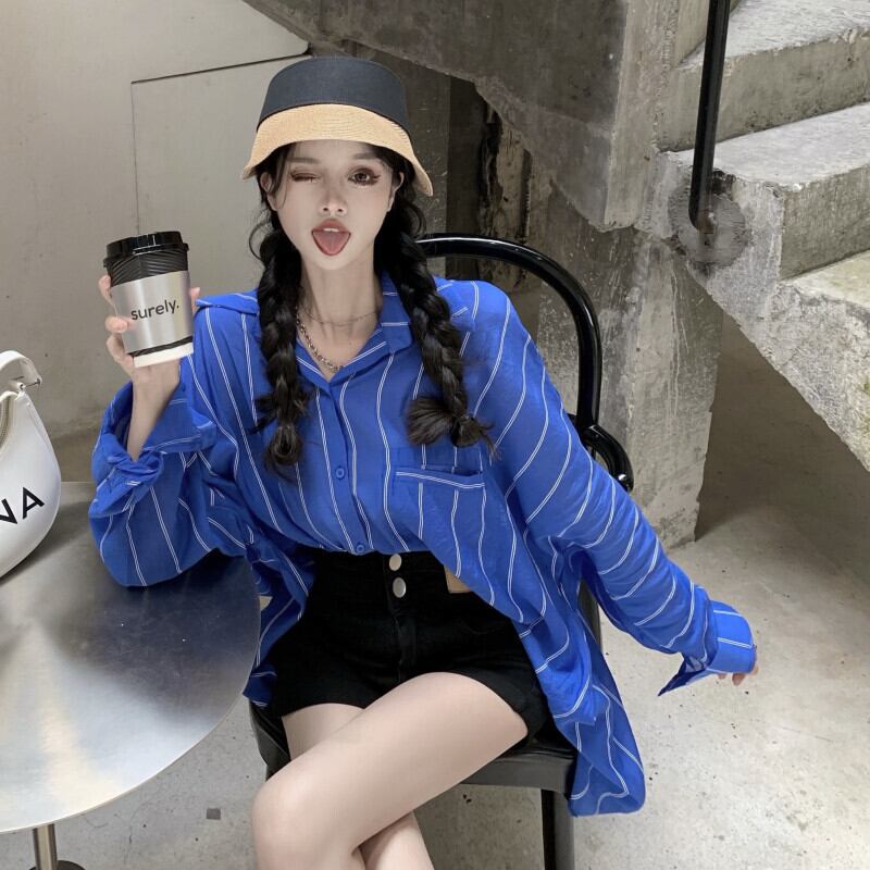 ルーズ薄手ストライプシャツ レディースサマーカジュアルジャケット 夏物 ガールズファッション38653815134