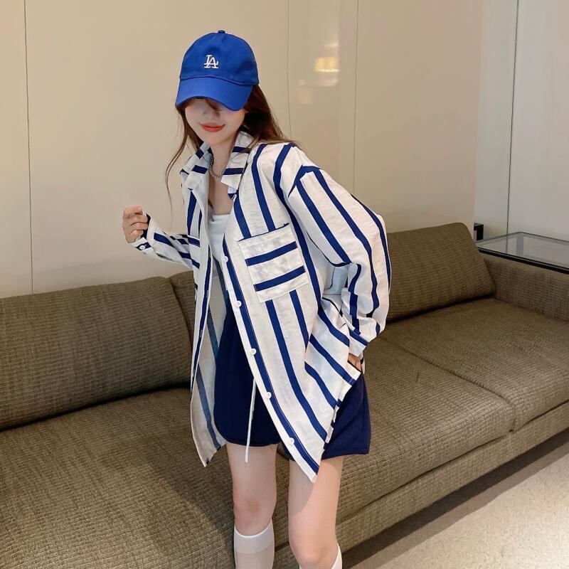 カラールーズストライプシャツ サマーハイウェストウェストカジュアルショーツ ロング 夏物 ブルマー ガールズファッション85403799870