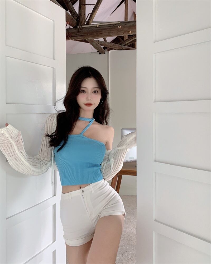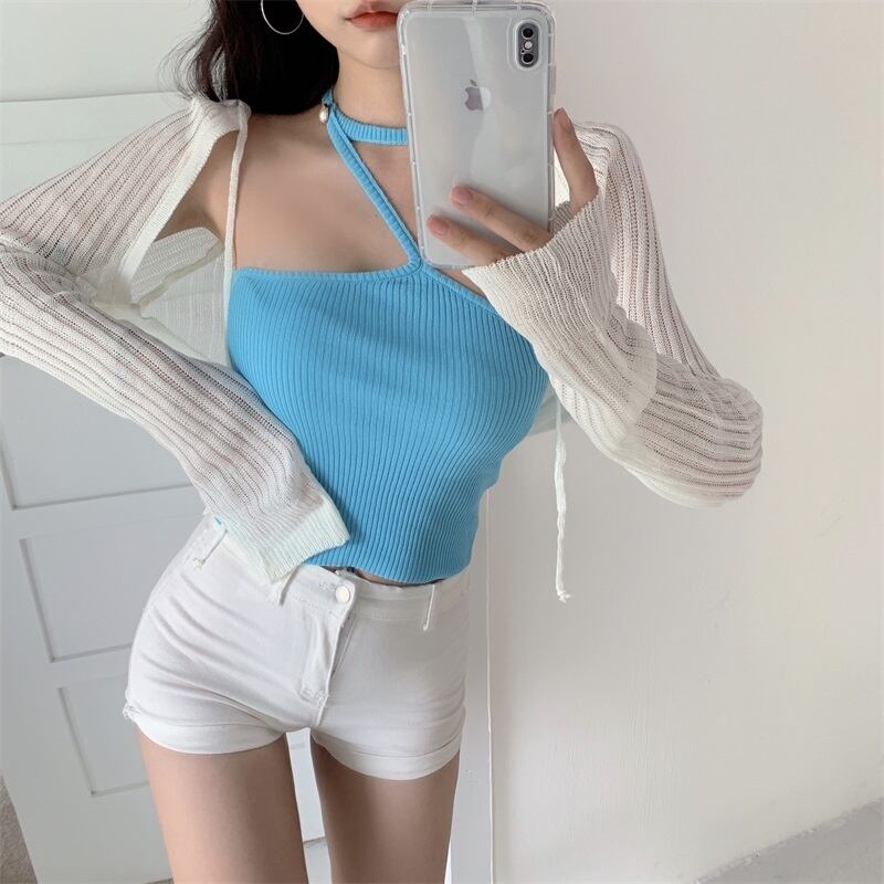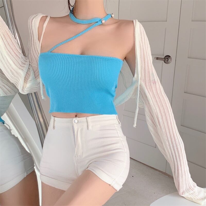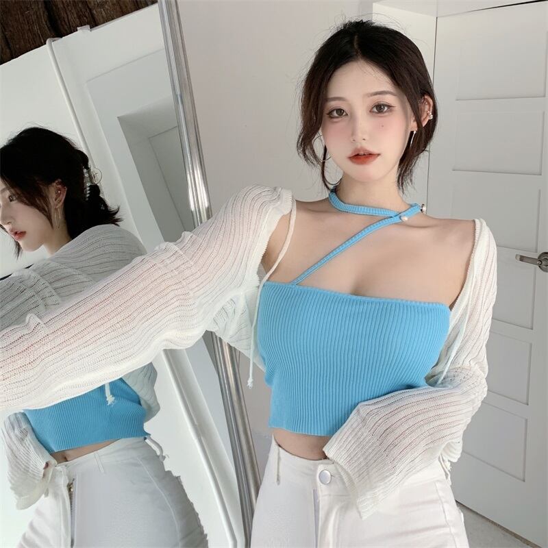 薄手セーター サマーショートブラウス レッド ロング 夏物 ガールズファッション190859252