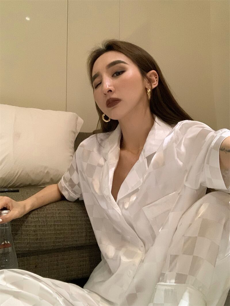 薄手格子柄レディースサマールーズトップス ハイウェスト 夏物 ガールズファッション52676967754