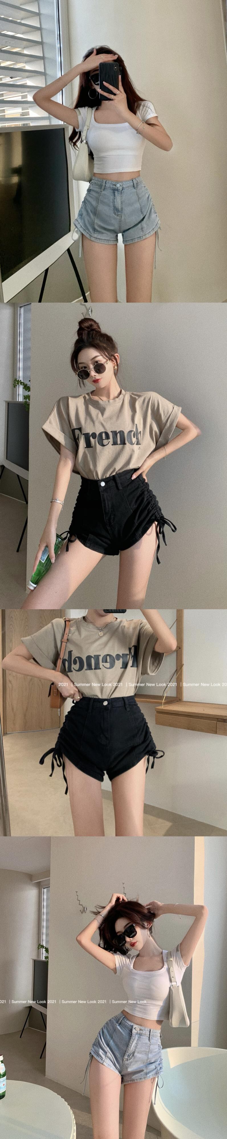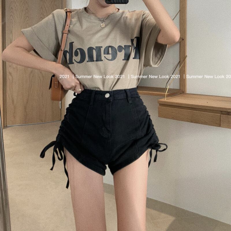 スタンダードプリーツパンツ サマーハイウェストウェストスリムジーンズ ショーツ カジュアル レトロ 夏物 ブルマー ガールズファッション80566508993